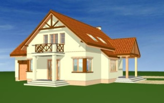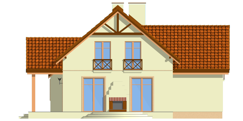 Projekt domu Wiosenny, to uroczy domek dla rodziny 4- 5-osobowej. Posiada wiele ciekawych rozwiązań, które dadzą Państwu dużo radości: dwustronny kominek, dostępny z salonu i z tarasu, piękny wysoki podcień z okrągłym okienkiem u góry, podcień wejściowy z balkonikiem, czy okna narożne - wszystkie te elementy zlewają się w niepowtarzalną i zarazem elegancką całość. Projekt domu Wiosenny charakteryzuje się prostą konstrukcją - opartą na prostokątnej bryle przekrytej dwuspadowym dachem z dobudowanym garażem. Wnętrze zaprojektowano zapewniając maksymalną przestrzeń pokoju dziennego na parterze, na poddaszu zaplanowano trzy sypialnie z dwiema łazienkami. Dodatkowe pokoje nad garażem i obok salonu na parterze czynią z tego niedużego domu bardzo pojemne i funkcjonalne mieszkanie. Pracownia posiada również projekt domu Wiosenny w odbiciu lustrzanym.