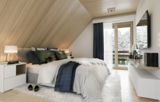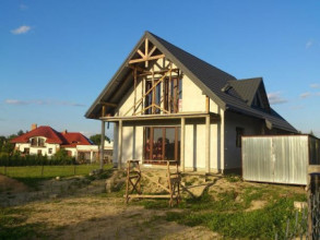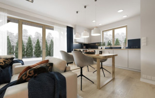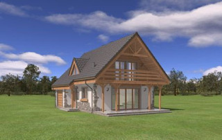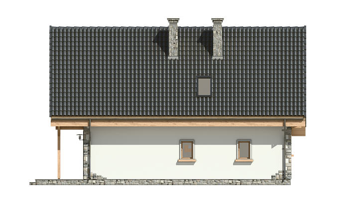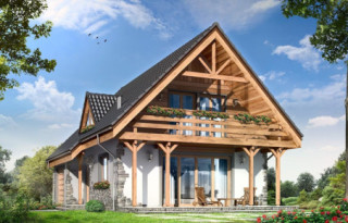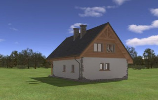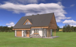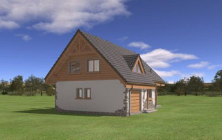 Projekt domu Wisełka to parterowy, jednorodzinny dom z poddaszem użytkowym, przekryty dwuspadowym, symetrycznym dachem. Projekt domu Wisełka zaprojektowano z myślą o 4- 5-osobowej rodzinie. Dom może służyć również jako letniskowy. Architektonicznie budynek nawiązuje do południowych rejonów Polski. Drewniane wykończenia szczytów domu Wisełka, słupy z zastrzałami, balkon, kamienne okładziny elewacji - wszystkie te elementy przywodzą na myśl podhalańskie wzory. Jednocześnie inspiracja jest na tyle delikatna, że domek nie będzie wyglądał dziwnie wybudowany na Mazurach, Śląsku, czy Mazowszu. Wnętrze domu Wisełka podzielono na część dzienną na parterze, oraz sypialnie na poddaszu. Na parterze zaprojektowano salon połączony z otwartą kuchnią i holem, oraz pięknym szerokim przeszklonym wyjściem na częściowo zadaszony taras i ogród. W centralnym miejscu umieszczono kominek i schody na górę. Dodatkowo na parterze przewidziano garaż i kotłownię. Na poddaszu znajdują się trzy sypialnie i łazienka. Pracownia posiada odbicie lustrzane projektu domu Wisełka, oraz wersję z dodatkowym pokojem zamiast garażu. Zapraszamy!