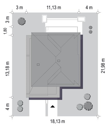 Wariant z pergolą nad wiatą garażową. Wiata może być zamieniona na taras wypoczynkowy.