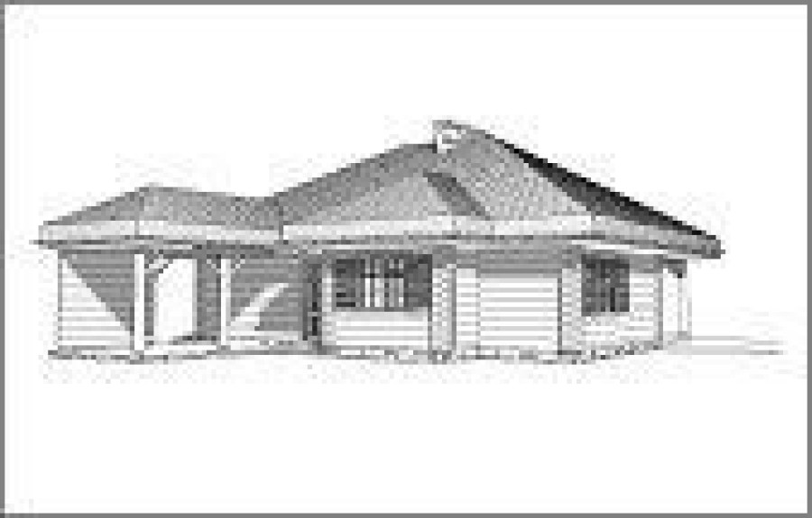 Wariant powiększony z poddaszem i piwnicą. Kryty strzechą.