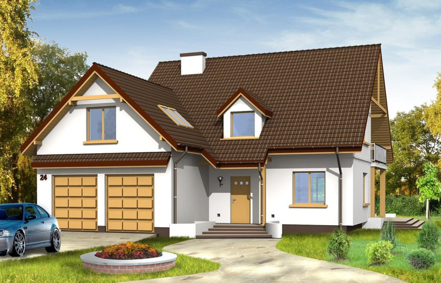 Projekt domu Zalesie to wygodny domek dla 4- 5-osobowej rodziny. Spokojna stonowana bryła współgra z funkcjonalnym wnętrzem. Domek Zalesie pasuje na wąską działkę, mimo że posiada dwustanowiskowy garaż. Wnętrze domu: na parterze mieści się duży salon, kuchnia z aneksem oraz gabinet. Na poddaszu zaprojektowano cztery sypialnie, duży pokój kąpielowy i garderobę. Pracownia posiada również projekt domu Zalesie w lustrzanym odbiciu.