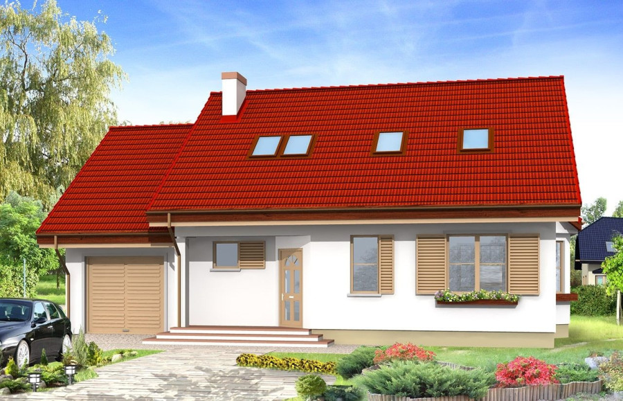 Projekt domu Zgrabny to budynek jednorodzinny z poddaszem użytkowym i z garażem. Odpowiedni dla rodziny 4- 5-osobowej. Domek jest nieduży, ma zwartą, tanią w budowie bryłę. Dom jest niedrogi także w późniejszej eksploatacji. Jednocześnie jest bardzo funkcjonalny. We wnętrzu Zgrabnego znajdują się wszystkie potrzebne pomieszczenia, a nawet więcej - na parterze jest dodatkowy pokój z osobną łazienką (np. sypialnia dla rodziców lub dziadków). Pracownia posiada wersję projektu domu Zgrabny także w odbiciu lustrzanym oraz inne jego wersje: projekt domu Zgrabny 2, projekt domu Zgrabny 3, projekt domu Zgrabny 4, projekt domu Zgrabny 5, projekt domu Zgrabny z lukarnami, projekt domu Zgrabny z przedsionkiem. Zapraszamy!