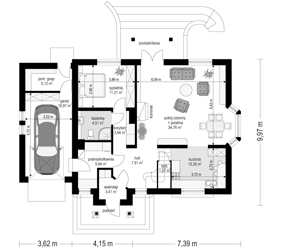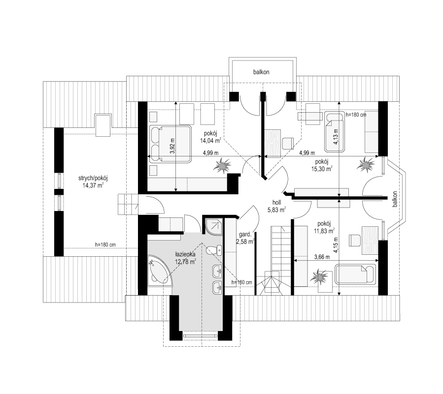 Projekt domu Zgrabny 2 powstał jako wariantowa wersja projektu Zgrabny. Jest to dom jednorodzinny dla rodziny 4- 5-osobowej. Projekt domu Zgrabny 2 charakteryzuje się bardzo funkcjonalnym wnętrzem. W projekcie, na parterze oprócz salonu został zaprojektowany dodatkowy pokój i łazienka. Na poddaszu umieszczono trzy sypialnie, garderobę, dużą łazienkę oraz dodatkowy pokój nad garażem. Pracownia MG Projekt dysponuje projektem domku Zgrabny 2 w odbiciu lustrzanym oraz inne jego wersje: projekt domu Zgrabny, projekt domu Zgrabny 3, projekt domu Zgrabny 4, projekt domu Zgrabny 5, projekt domu Zgrabny z lukarnami, projekt domu Zgrabny z przedsionkiem. Zapraszamy!