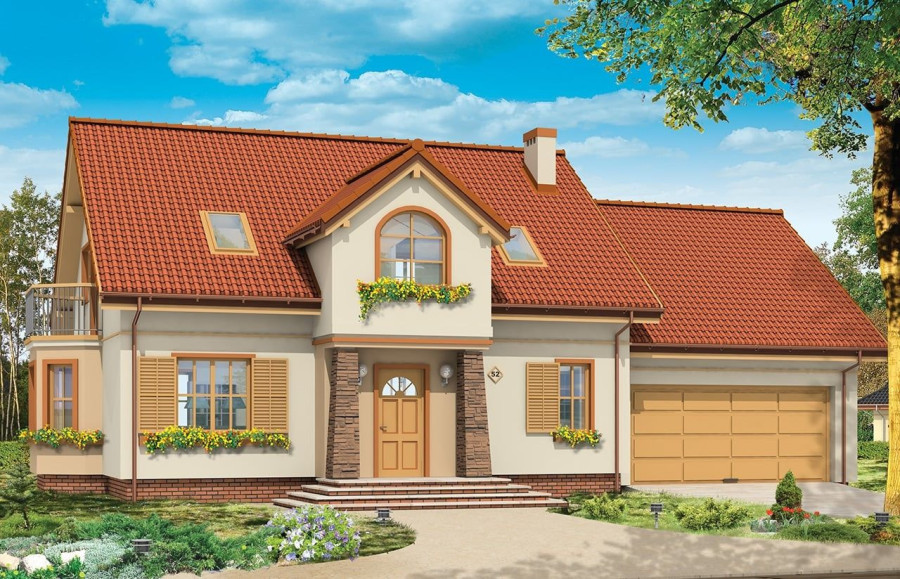 Projekt domu Zgrabny 5 to kolejna odsłona jednego z najpopularniejszych projektów pracowni MG Projekt, domu Zgrabny. Projekt ten posiada dwustanowiskowy garaż i rozbudowaną część mieszkalną. Na parterze zaprojektowano salon z aneksem jadalnym i kuchnią, oraz dodatkowy pokój - sypialnia lub gabinet. Na poddaszu znajdują się trzy przestronne sypialnie z łazienką, oraz duże pomieszczenie uniwersalne nad garażami. W projekcie Zgrabny 5, dzięki podniesieniu ścian kolankowych poddasza pokoje są większe. Lukarny umożliwiły umieszczenie okien w każdym z pokoi. Dom stanowi rozsądną propozycję dla rodziny 4- 6-osobowej. Można również zamieszkać w tym domu z dziadkami. Duży garaż wraz z pomieszczeniem gospodarczym to dodatkowy atut projektu. Projekt domu Zgrabny 5 można również zamówić w wersji odbicia lustrzanego oraz inne jego wersje: projekt domu Zgrabny, projekt domu Zgrabny 2, projekt domu Zgrabny 3, projekt domu Zgrabny 4, projekt domu Zgrabny z lukarnami, projekt domu Zgrabny z przedsionkiem. Zapraszamy!