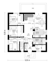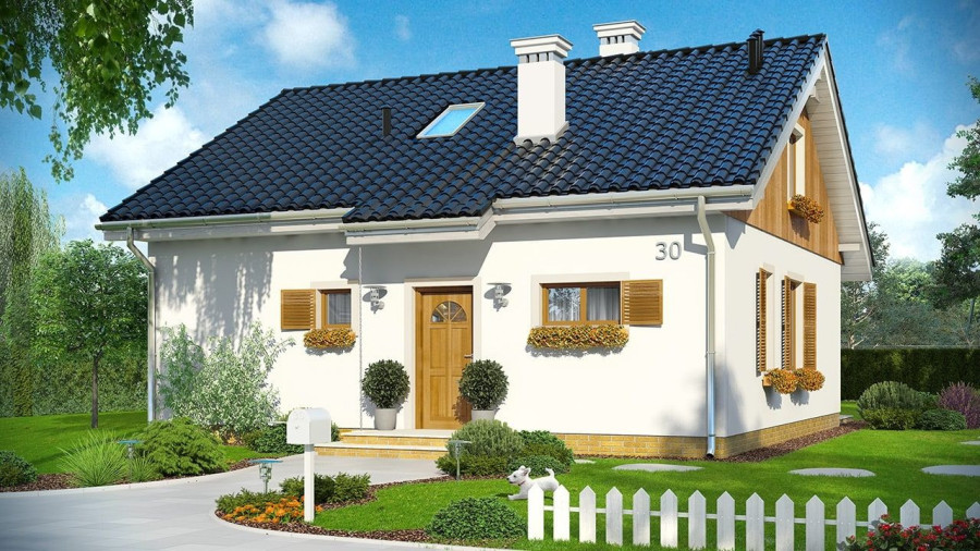 Projekt domu Zosia 3 to kolejna odsłona popularnego projektu z serii Zosia z pracowni MGProjekt. Tym razem prezentujemy domek parterowy z poddaszem zagospodarowanym na cele użytkowe. Dzięki funkcjonalnemu układowi pomieszczeń w niewielkiej powierzchni stu metrów kwadratowych udało się zmieścić aż sześć pokoi - salon, oraz trzy pokoje na parterze i dwie dodatkowe sypialnie na poddaszu. Projekt domu Zosia 3 nadaje się idealnie dla wieloosobowej rodziny chcącej niewielkim kosztem zbudować swoją siedzibę. Domek jest też świetną propozycją dla osób potrzebujących dodatkowych – poza sypialniami - pokoi (na przykład do pracy zawodowej). Projekt domu Zosia 3 to również świetna propozycja na dom wakacyjny - dzięki dużej ilości pokoi zmieścimy wielu gości. Budynek ma prostą, nieskomplikowaną w budowie bryłę i konstrukcję. Jest niedrogi w budowie i w późniejszej eksploatacji. Dzięki dobrym izolacjom i zwartej bryle wydatki na ogrzewanie będą niewielkie. Architektura zewnętrzna to bezpretensjonalna zgrabna bryła, w skali człowieka, z łagodnie schodzącymi połaciami dachów. Dostępne jest również odbicie lustrzane. Zapraszamy do zapoznania się z pełną ofertą pracowni MG Projekt tej serii: projekt domu Zosia, projekt domu Zosia 2, projekt domu Zosia 4, projekt domu Zosia 5, projekt domu Zosia 6, projekt domu Zosia 7, projekt domu Zosia 7B, projekt domu Zosia 8. Zapraszamy!