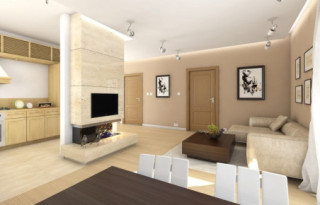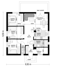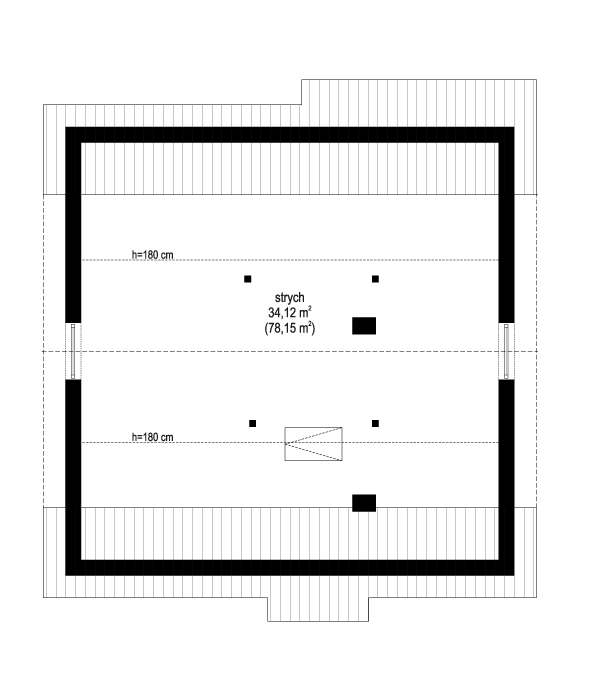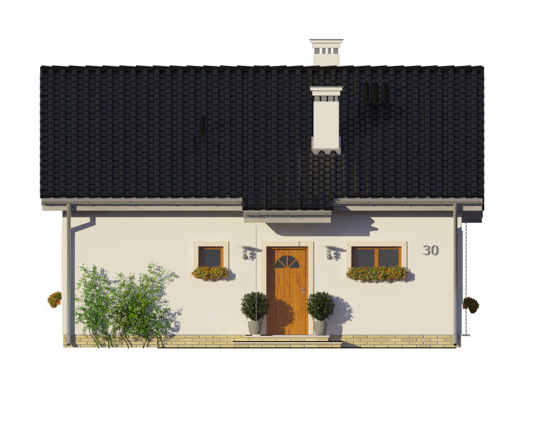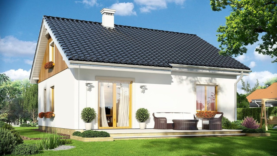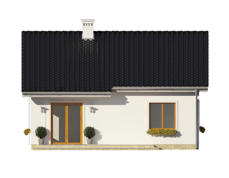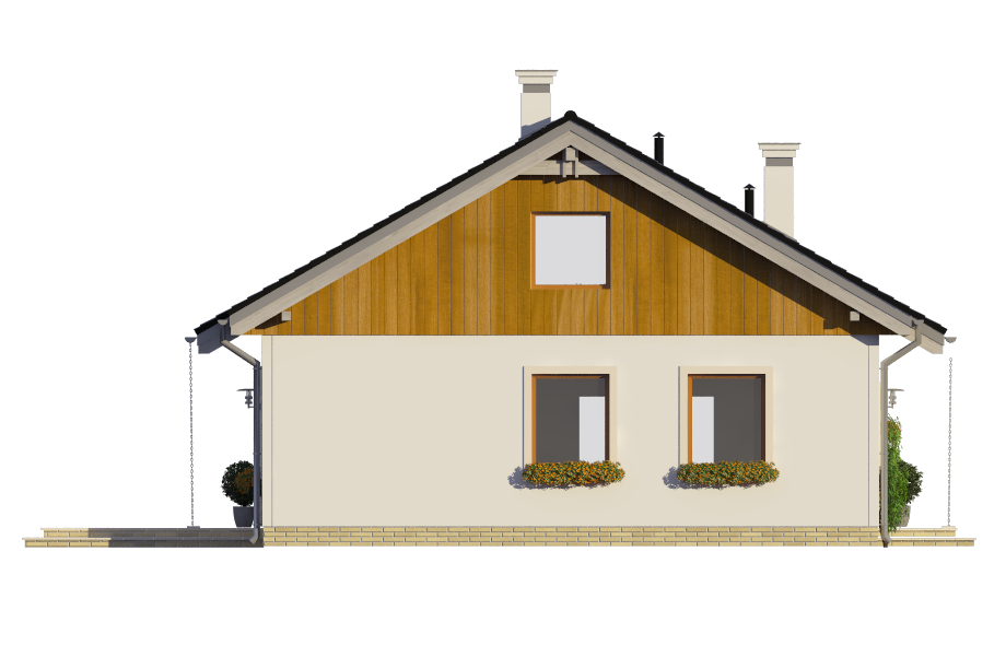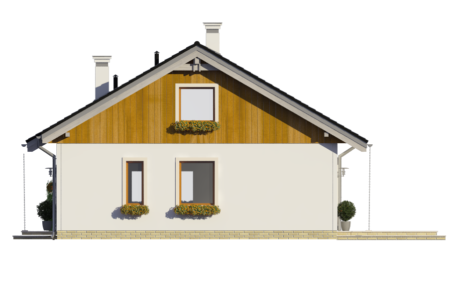 Wariant projektu ze zmienionym stropem na drewniany, zamiana wiązarów na klasyczną więźbę, doprojektowane okna w ścianie szczytowej na strychu/poddaszu. Możliwość zaadoptowania strychu na cele mieszkalne.