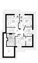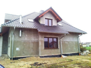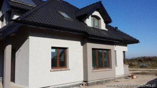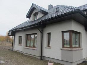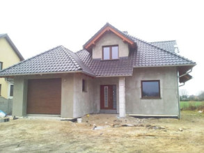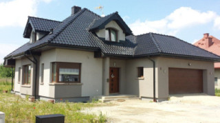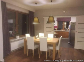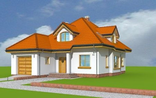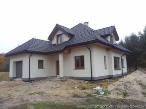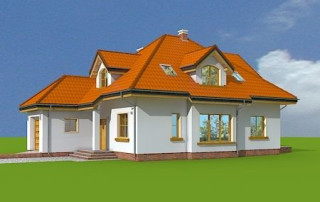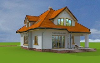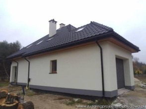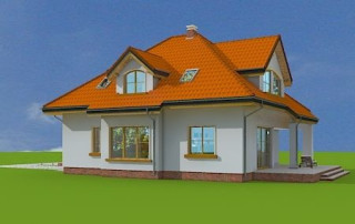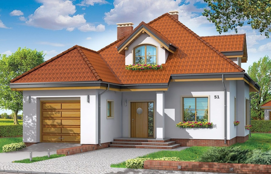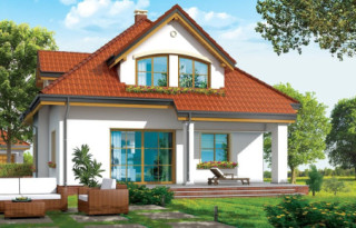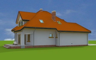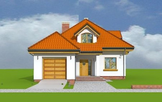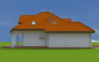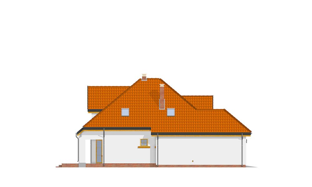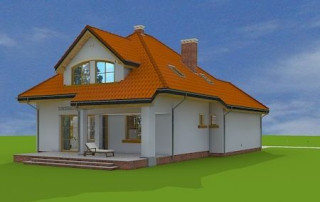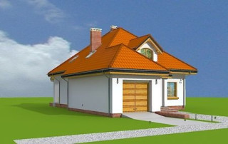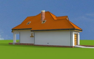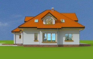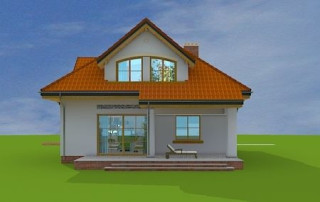Projekt domu Zuzia, to bardzo praktyczny a zarazem uroczy dom jednorodzinny. W sam raz dla 4- 5-osobowej rodziny planującej budowę. Budynek jest parterowy, z poddaszem użytkowym, przekryty czterospadowym dachem, z częściowo wbudowanym w bryłę garażem. Bryła ozdobiona jest dużymi lukarnami poddasza, wejściem z zadaszeniem i kolumną, wykuszem jadalni i podcieniem ogrodowym. Tradycyjna forma polskiego domu została podana w nowoczesnym, świeżym ujęciu. Zastosowane w Zuzi materiały, czy duże przeszklenia otwierające wnętrze na ogród, funkcjonalny układ wnętrz domu - całość podkreśla współczesność rozwiązań. Wnętrze parteru zostało zaprojektowane jako otwarta, jednoprzestrzenna część dzienna, z salonem, holem, aneksem jadalnym, oraz częściowo otwartą kuchnią. Dodatkowo na parterze przewidziano pokój mogący służyć jako gabinet, lub sypialnia, oraz garaż i kotłownię. Na poddaszu umieszczono trzy wygodne sypialnie z garderobami lub szafami wbudowanymi, łazienkę i dodatkowy pokój. W średniej wielkości domu, dzięki funkcjonalnemu układowi wnętrz udało się zmieścić wiele pomieszczeń, tak że dom sprawia wrażenie większego niż jest w rzeczywistości. Pracownia posiada również projekt domu Zuzia w wersji odbicia lustrzanego.