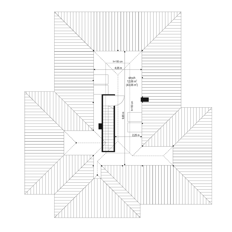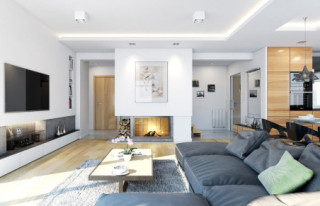 Projekt domu „Dom na Miarę 2” jest nieco powiększoną wersją wariantową projektu Dom na Miarę. Jest to parterowy dom jednorodzinny dla 4- 5-osobowej rodziny - wersja z dwustanowiskowym garażem. Budynek zbudowany jest na rzucie wydłużonego wgłęb działki prostokąta, z dobudowanymi poprzecznymi bryłami salonu z podcieniem i garażu. Dom przykrywa wielospadowy dach o kącie nachylenia 30 stopni. Nad wnętrzem parteru kryje się spory strych, możliwy do zaadaptowania na poddasze. Dom doskonale nadaje się na wąską działkę w wjazdem od południa. Dzięki umieszczeniu większości okien części dziennej na bocznej i frontowej elewacji wnętrze jest idealnie oświetlone, a boczny i wysunięty na front ogródek będzie prawidłowo nasłoneczniony. Dom ma nowoczesny wygład. Główna bryła i detale tworzą ciekawą, a zarazem spokojną architekturę. Wnętrze domu podzielono na części: dzienną, sypialnie i część gospodarczą. Do budynku wchodzimy z przedsionka prosto do holu ze schodami na strych (poddasze). Otwarta przestrzeń salonu, jadalni i kuchni tworzy duże dzienne wnętrze – serce domostwa. Nieco z tyłu zaprojektowaliśmy trzy sypialnie, z garderobami i szafami wbudowanymi, łazienkę i oddzielne wc. Wygodny garaż na dwa auta + przestrzeń gospodarczo-magazynowa dopełniają wnętrze parteru. Na górze mamy jeszcze duży strych, który może służyć jako domowy magazyn, lub można go wykorzystać na cele użytkowe - do wyboru. Dom powinien być niedrogi z budowie i późniejszym utrzymaniu. „Dom na Miarę” jest energooszczędny - ma bardzo dobre ocieplenia przegród. Łatwo można go dostosować do standardu NF40. Zapraszamy do zapoznania się z pełną ofertą pracowni MG Projekt: Dom na miarę.