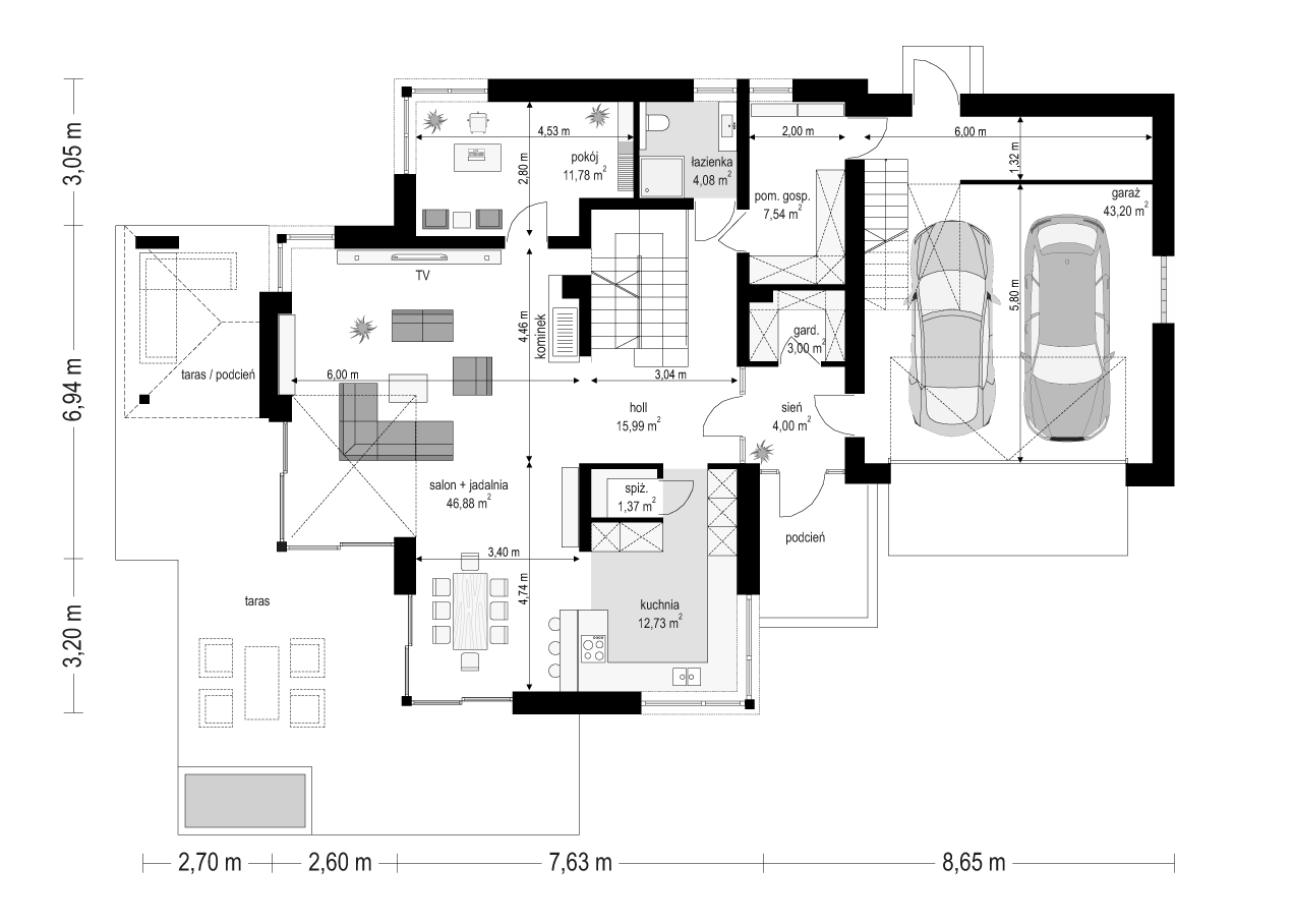 Wariant projektu ze zmianami: częściowe podpiwniczenie