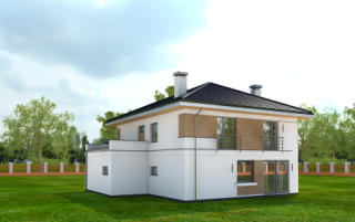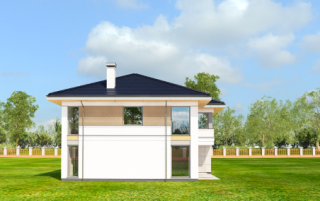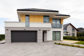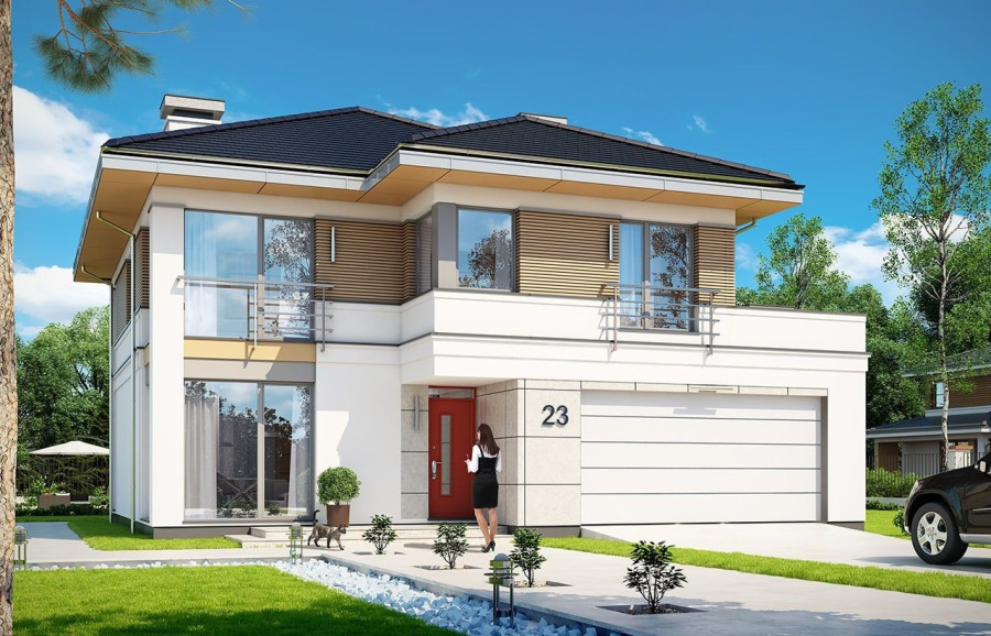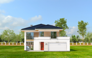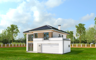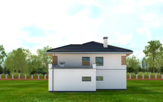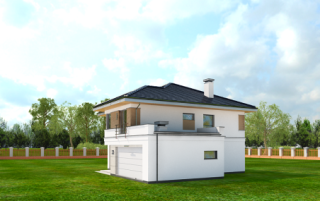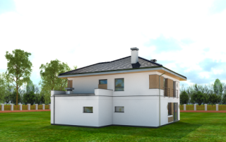 Projekt domu Tytan 4 jest nową wersją popularnego projektu Tytan. Piętrowy dom, przeznaczony dla 4- 6-osobowej rodziny, o zwartej bryle, zbudowany na planie prostokąta, z dobudowanym garażem dwustanowiskowym. Budynek doskonale nadaje się na działkę w niekorzystnym nasłonecznieniem (ze słońcem od strony wjazdu). Prosta bryła, nowoczesny wyraz architektoniczny, połączony z funkcjonalnym wnętrzem, daje bardzo korzystne połączenie. Projekt domu Tytan 4 mimo, że nie ma dużej powierzchni użytkowej, sprawia wrażenie przestronnego i komfortowego. Na parterze zaprojektowaną jedną otwartą przestrzeń dzienną z holem, salonem, aneksem jadalnym i kuchnią. Na piętrze zaprojektowano apartament rodziców, z dużą sypialnią, łazienką i garderobą, dwie sypialnie dzieci z łazienką, oraz dodatkowy pokój (gabinet, sypialnię gościnną). Na parterze mamy dodatkowo, duży dwustanowiskowy garaż, oraz kotłownię, a przy kuchni spiżarnię. Prosta konstrukcja domu, jego zwarta bryła zapewnią niedrogą i nieskomplikowaną budowę, oraz niewielkie późniejsze koszty utrzymania budynku. Zastosowane nowoczesne technologie, dobre izolacje polepszają energooszczędność budynku. Wygląd zewnętrzny domu: elewacje podzielono na poziome pasy wykończone różnymi materiałami (tynk, drewno, cegła klinkierowa). To daje wrażenie nowoczesności i właściwych proporcji. Detale wykończeń elewacji: gzymsy, parapety, okładziny ścian, czy duże przeszklenia - wszystkie one tworzą atrakcyjny styl domu. Projekt domu Tytan 4 to solidny, niewielki, funkcjonalnie zaprojektowany dom, w sam raz dla kilkuosobowej rodziny pragnącej mieszkać z nowoczesnej architekturze. Prostota konstrukcji pozwoli utrzymać koszt budowy w granicach rozsądku, a energooszczędne rozwiązania pozwolą osiągnąć niskie koszty utrzymania. Tytan 4 dostępny jest także odbiciu lustrzanym. Zapraszamy do zapoznania się z pełną ofertą pracowni MG Projekt: projekt domu Tytan, projekt domu Tytan 2, projekt domu Tytan 2B, projekt domu Tytan 3, projekt domu Tytan 5, projekt domu Tytan 5B, projekt domu Tytan 6, projekt domu Tytan 6B.