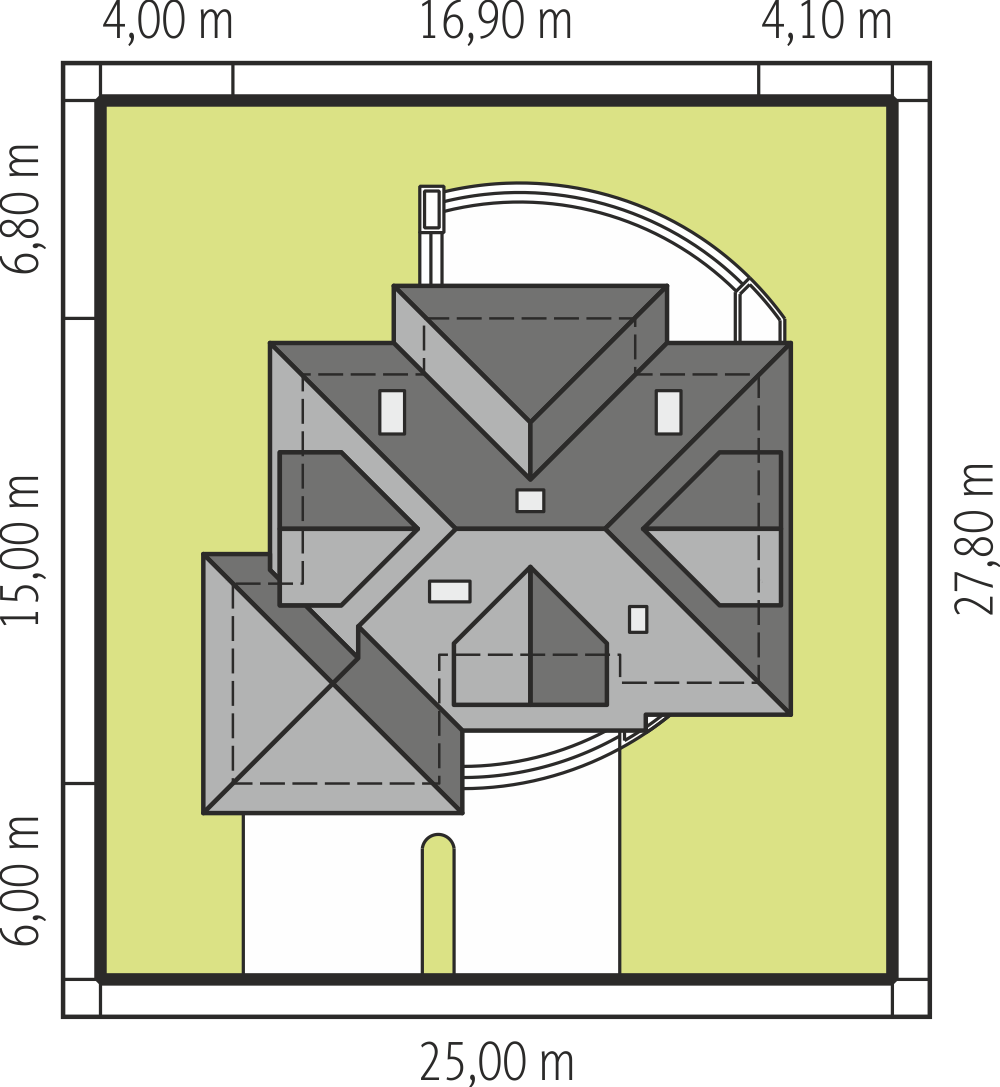 Wariant projektu ze zmienionym kątem nachylenia dachu na 30 stopni