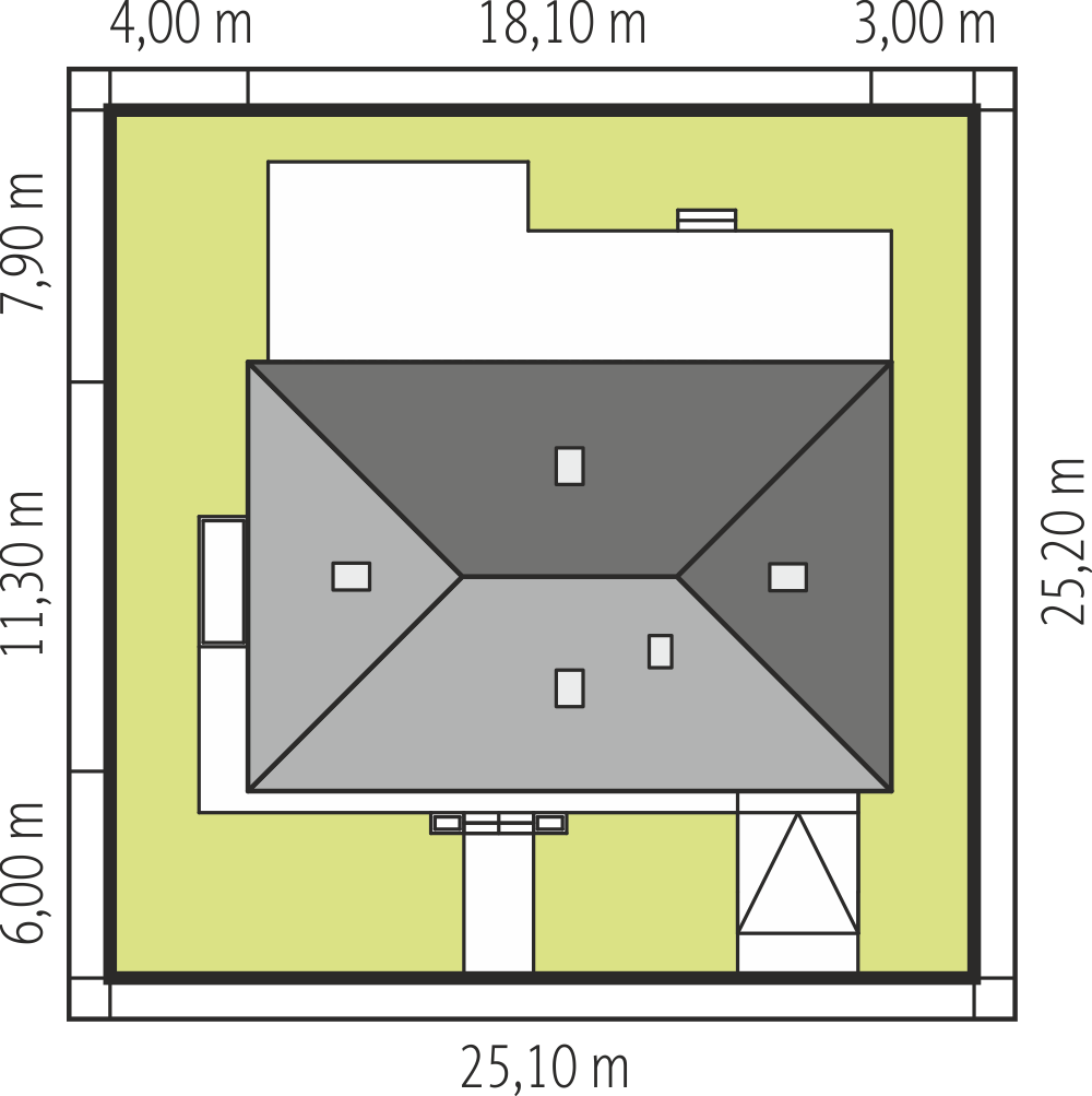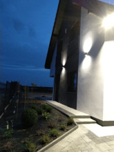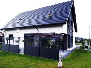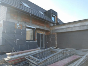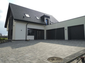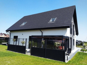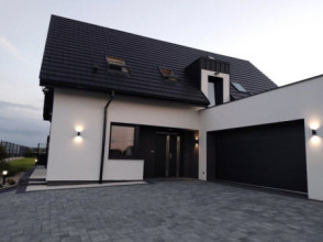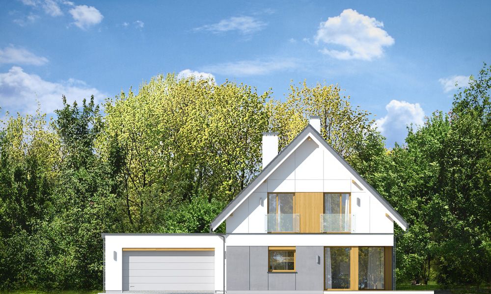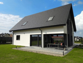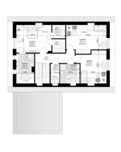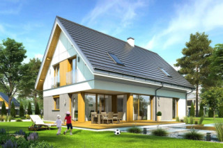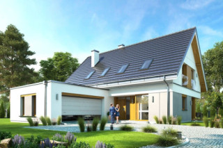 Projekt domu Viking to podstawowa bazowa wersja projektu z serii domów Viking. Jest to projekt parterowego budynku z poddaszem użytkowym, dla rodziny 4- 6-osobowej. Dom o prostej nowoczesnej bryle, energooszczędny, zbudowany na planie prostokąta, przykrytego dwuspadowym symetrycznym dachem, z dobudowanym parterowym garażem. Projekt domu Viking, dzięki odpowiedniemu rozplanowaniu pomieszczeń i otworów okiennych i drzwiowych, nadaje się zarówno na działkę z drogą naprzeciwko wejścia (równoległą do kalenicy), jak i na działkę z wjazdem od południa (wówczas wjazd znajduje się naprzeciwko wrót garażowych). Nowoczesna architektura i funkcjonalne wnętrze przypadną do gustu osobom ceniącym rozsądek i maksymalny efekt w architekturze z zastosowaniem minimalistycznych środków. Front Vikinga zaakcentowany jest dużym przeszkleniem kuchni, oraz podcieniem z wejściowymi drzwiami z bocznym naświetlem. Ściany frontowa i garażowa tworzą wejściowo-wjazdowy placyk – dziedziniec. Dzięki takiemu rozwiązaniu przed domem znajdzie się sporo miejsca na wygodny podjazd, parking, oraz reprezentacyjną zieleń. Z tyłu domu królują duże przeszklenia salonu i jadalni otwierające wnętrze parteru na ogród, oraz wygodny podcień będący zadaszeniem części tarasu. Wnętrze podzielono część dzienną i gospodarczą na parterze, oraz sypialnie na poddaszu. Na parterze zaprojektowano jednoprzestrzenne wnętrze salonu, jadalni i holu, z częściowo otwartą na jadalnię kuchnią ze spiżarką. Obok salonu znajduje się dodatkowy pokój: gabinet lub sypialnia gościnna i łazienka, a obok schodów przechodzimy do części gospodarczej, z pomieszczeniem gospodarczym, kotłownią i dwustanowiskowym garażem. Na poddaszu zaprojektowano dwie duże sypialnie dziecięce z szafami wbudowanymi, łazienkę, pralnię, oraz osobny apartament rodziców, z dwiema garderobami i oddzielną dużą łazienką. Dom jest bardzo wygodny i komfortowy. Jednocześnie jego prosta bryła i konstrukcja pozwoli na sprawną w niedrogą budowę, a energooszczędne rozwiązania i zwartość bryły budynku - na niewysokie koszty utrzymania domu. Projekt domu Viking dostępny jest w odbiciu lustrzanym jak i w kilku innych wersjach np. z garażem jednostanowiskowym i zwężoną bryłą główną (projekt domu Viking 2), bez garażu (projekt domu Viking 3), z zadaszeniem nad garażem (projekt domu Viking 4), oraz największy (projekt domu Viking 5) Dom można łatwo dostosować do standardu NF40. Zapraszamy.