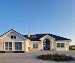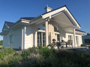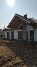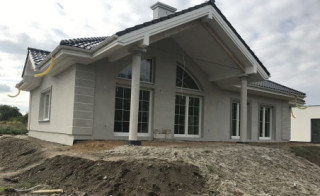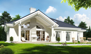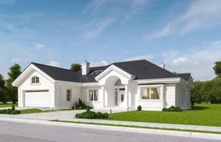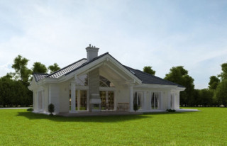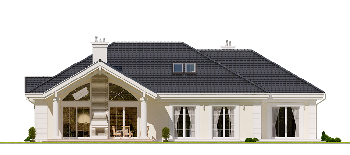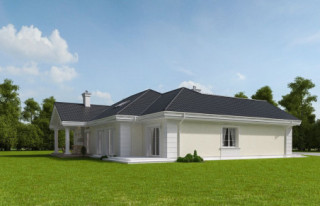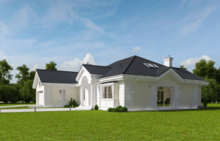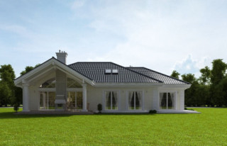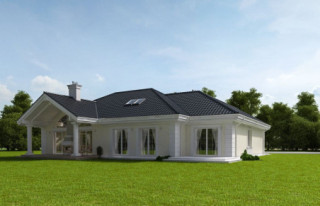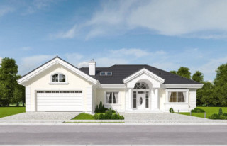 Projekt domu Willa Parkowa to projekt stylowej willi jednorodzinnej, przeznaczonej dla 4-5 osobowej rodziny, parterowej, z niewielkim poddaszem użytkowym. Dom jest kontynuacją projektów domów z serii Rezydencja parkowa, jednak tym razem chociaż projekt Willa Parkowa jest mniejszy - mieści niemal te same funkcje i ilość pomieszczeń, jednak na powierzchni użytkowej parteru 160 m2 plus dwustanowiskowy duży garaż. Rozłożysta bryła projektu Willa Parkowa przykryta wielospadowym dachem łączy główną bryłę, oraz dobudowany garaż od frontu i duży zadaszony taras od strony ogrodowej. Elewację frontową domostwa ozdabia reprezentacyjny portyk wejściowy z kolumnami. Projekt parterowego domu jednorodzinnego Willa Parkowa utrzymany jest w stylistyce podmiejskiej rezydencji. Detale architektoniczne podkreślają klasyczny styl projektu domu Willa Parkowa. Wnętrze Willi Parkowej zaprojektowano nowocześnie i funkcjonalnie. Część dzienna to jednoprzestrzenna powierzchnia uzytkowa salonu, jadalni, holu i kuchni. Nad częścią salonu zaprojektowano otwarcie przestrzenne - pustkę. W domu Willa Parkowa nad salonem przewidziano antresolę. Z holu i salonu widzimy reprezentacyjne zabiegowe schody na poddasze. Drugą część budynku w projekcie domu Willa Parkowa zajmują sypialnie, oddzielone od części dziennej. W tym domu przewidziano również apartament rodziców - z łazienką i garderobą i własnym oddzielnym tarasem, oraz dwie sypialnie dziecięce z łazienką. Na poddaszu zaprojektowano dodatkowy pokój - może to być gabinet, lub jeszcze jedna sypialnia. W części gospodarczej projektanci MGProjekt zaplanowali kotłownię i dwustanowiskowy garaż. Staraliśmy się oszczędnie gospodarować przestrzenią i "wycisnąć" z niej jak najwięcej. Dzięki temu projekt Willa Parkowa to komfortowy, ale jednocześnie ekonomiczny budynek, z którego przyszli domownicy będą dumni. Willa Parkowa to dom, który nie zrujnuje na całe życie kosztami budowy i utrzymania. W projekcie domu Willa Parkowa zostały zastosowane energooszczędne rozwiązania, koszty życia w tej mini-rezydencji będą więc kształtowały się na sensownym poziomie. Zapraszamy do obejrzenia wszystkich projektów domów z serii Willa Parkowa: https://www.mgprojekt.com.pl/willa-parkowa, https://www.mgprojekt.com.pl/willa-parkowa-2, https://www.mgprojekt.com.pl/willa-parkowa-3, https://www.mgprojekt.com.pl/willa-parkowa-4, https://www.mgprojekt.com.pl/willa-parkowa-5, https://www.mgprojekt.com.pl/willa-parkowa-6, https://www.mgprojekt.com.pl/willa-parkowa-6-d, https://www.mgprojekt.com.pl/willa-parkowa-7, https://www.mgprojekt.com.pl/willa-parkowa-8-a, https://www.mgprojekt.com.pl/willa-parkowa-8-b, https://www.mgprojekt.com.pl/willa-parkowa-9, https://www.mgprojekt.com.pl/willa-parkowa-10, https://www.mgprojekt.com.pl/willa-parkowa-b, https://www.mgprojekt.com.pl/willa-parkowa-c, https://www.mgprojekt.com.pl/willa-parkowa-d.