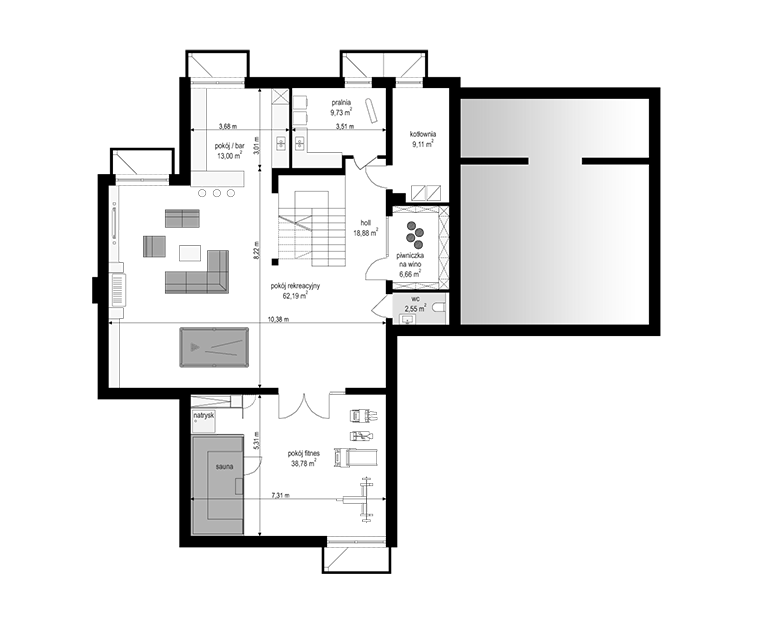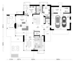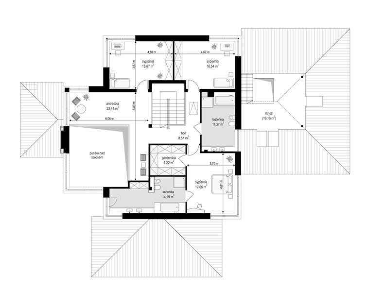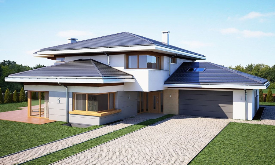 Przerobiony wariant C z podpiwniczeniem: zmieniony kąt nachylenia dachu na 19,52 stopni