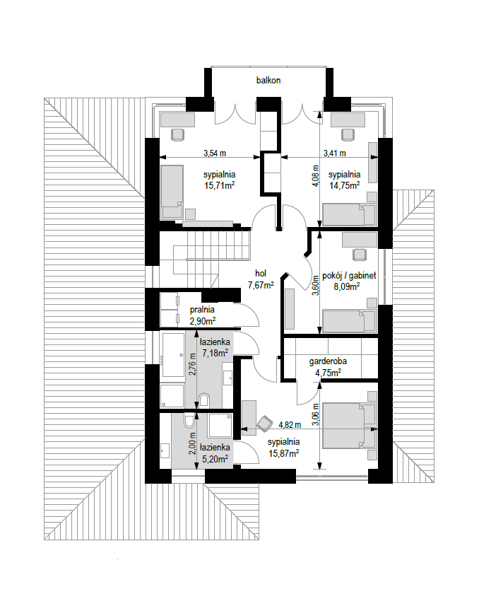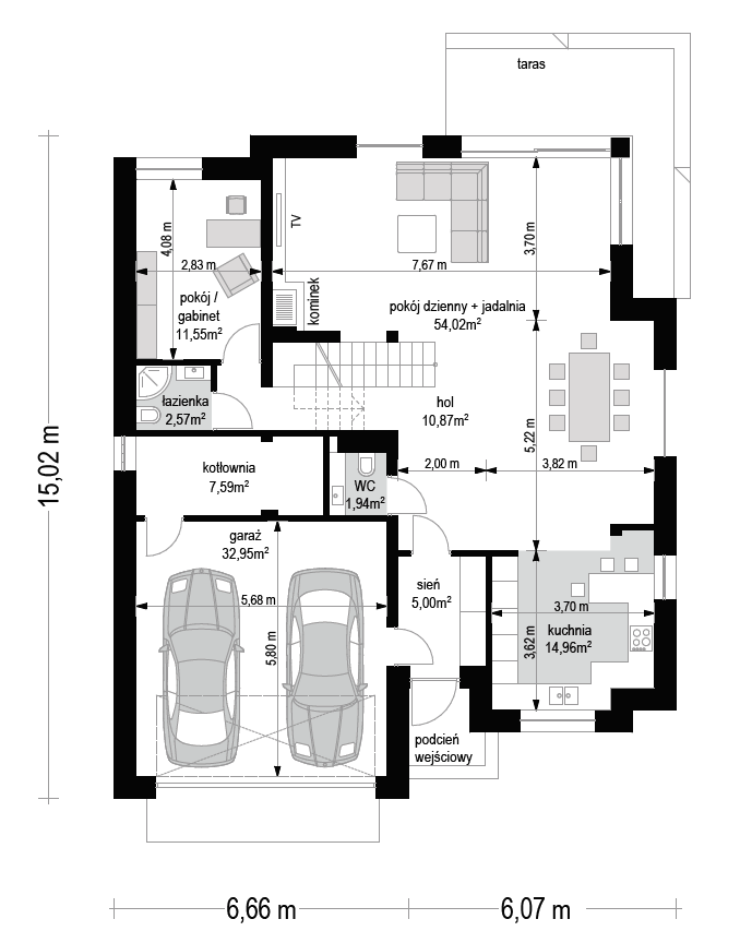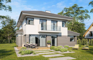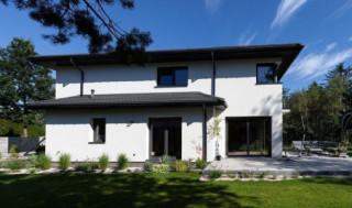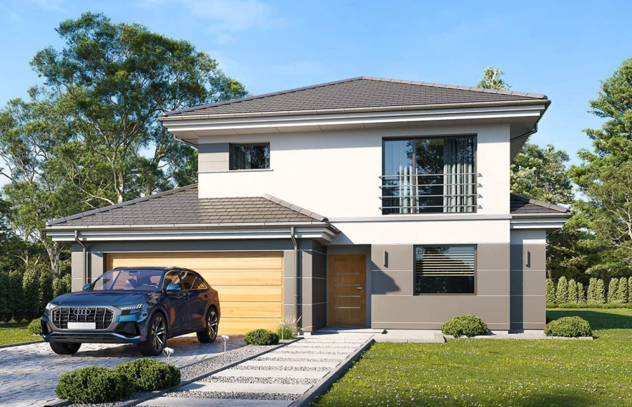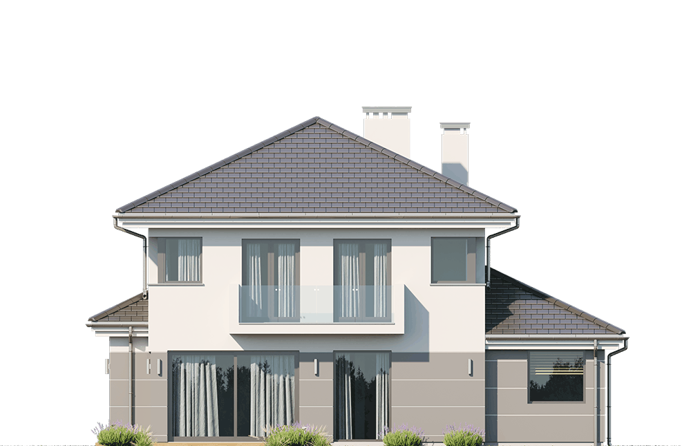 Wariant ze stropem monolitycznym nad parterem oraz likwidacja podcienia tarasowego i loggii.