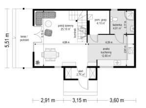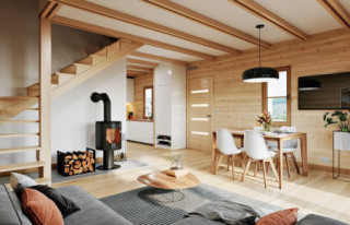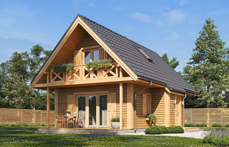 Wariant poszerzony o 1 m, łazienka na poddaszu, ogrzewanie gazowe.