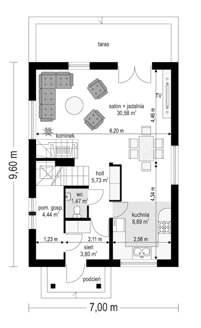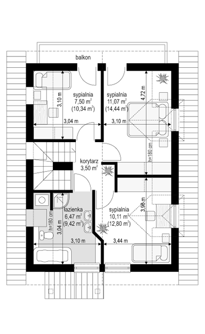 Projekt domu Adaś to idealna propozycja dla czteroosobowej rodziny. Dom Adaś został zaprojektowany z naczółkowym dachem. Wnętrze ukształtowano z podziałem na część ogólną, dzienną - z salonem oraz część prywatną oraz nocną z trzema sypialniami i łazienką.Dostępna jest wersja projektu w odbiciu lustrzanym. Projekt domu Adaś występuje w wersjach wariantowych z garażem dobudowanym z boku domu lub garażem od strony elewacji frontowej (D03 z garażem) - jako propozycja MG Projekt na bardzo wąską działkę.