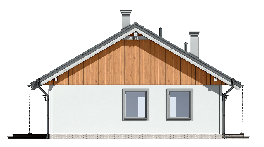 Projekt domu Zosia to parterowy domek jednorodzinny dla niewielkiej, 4-5 osobowej rodziny. Domek Zosia zbudowany jest na planie kwadratu 9,5x9,5 m i przekryty dwuspadowym symetrycznym dachem o kącie nachylenia 30 stopni. Zosię można wybudować na działce o wymiarach 17,5x17,5m. Istotą gotowego projektu domu jednorodzinnego Zosia jest prostota bryły w połączeniu z dobrze dobranymi proporcjami i ciekawym detalem. Domek Zosia zaprojektowano w tradycyjnej, dobrze znanej wszystkim firmom budowlanym technologii murowanej. Program użytkowy domu Zosia: wewnątrz domu zaprojektowano wygodne czteropokojowe mieszkanie wraz z zapleczem technicznym. W projekcie domu Zosia projektanci MGProjekt przewidzieli salon z centralnie ustawionym kominkiem i ścianą telewizyjną, połączony z holem, jadalnią i otwartą kuchnią, co daje duże jednoprzestrzenne wnętrze dzienne. Dodatkowo we wnętrzu domku znajdują się trzy sypialnie, łazienka i kotłownia, które znakomicie dopełniają program użytkowy projektu domu jednorodzinnego Zosia, dzięki czemu pomimo niewielkiej powierzchni użytkowej 70,48 m² jest on funkcjonalny i wygodny dla przyszłych domowników. Dom Zosia ma prostą konstrukcję i jest łatwy w budowie nie tylko systemem zleconym, ale i gospodarczym. Zastosowane w Zosi nowoczesne rozwiązania techniczne i materiały sprawiają, że będzie również energooszczędnym, a tym samym niedrogim w użytkowaniu domostwem. Pracownia architektoniczna MGProjekt, autor projektu, dysponuje odbiciem lustrzanym budynku. Dostępne są również warianty i inne projekty domów z serii Zosia: projekt domu Zosia 2, projekt domu Zosia 3, projekt domu Zosia 4, projekt domu Zosia 5, projekt domu Zosia 6, projekt domu Zosia 7, projekt domu Zosia 7B, projekt domu Zosia 8. Zapraszamy!
