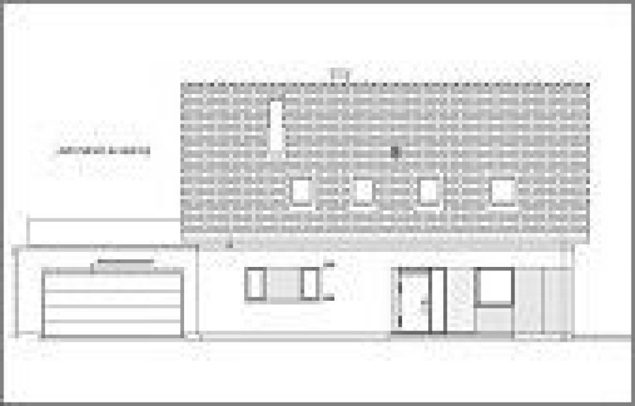 Wariant projektu z przeniesionym garażem na boczną elewację oraz przeniesionym okiem na elewację tylną,z zaprojektowanym tarasem nad garażem z wejściem z sypialni. Przeniesienie i odbicie lustrzane klatki schodowej, zmiana układu pomieszczeń w obrębie klatki schodowej i wejścia do garażu.