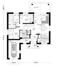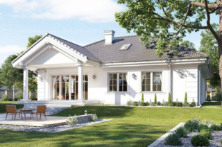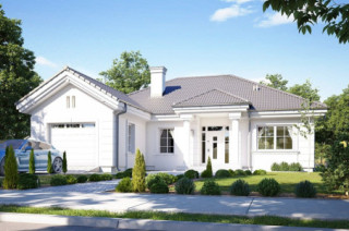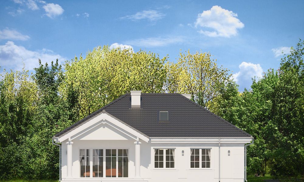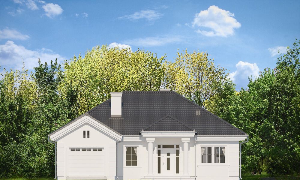 Projekt domu Dom na Parkowej 3 jest kolejną wersją wariantową cieszącego się dużą popularnością projektu domu z serii „Dom na Parkowej”. Nieco zmniejszony domek, z pojedynczym garażem, zlikwidowaną pustką nad salonem i uproszczonym portykiem wejściowym. Dzięki tym zmianom strych nad parterem można swobodnie wykorzystać na większe niż w podstawowym projekcie poddasze użytkowe z dodatkowymi pokojami. Architektura domu stanowi nawiązanie do amerykańskich podmiejskich willi, oraz po części do wzoru domu polskiego z lat 20-tych i 30-tych. Wygląd zewnętrzny domu pozostaje tradycyjny - jego wnętrze natomiast ma już zupełnie współczesny, funkcjonalny program i układ. Wnętrze podzielono na część dzienną, z ładnym salonem z jadalnią, połączonym z holem i kuchnią, oraz część intymną, nocną z trzema sypialniami i łazienką. Sypialnie dziecięce posiadają szafy wbudowane, wnękowe, sypialnia rodziców natomiast – własną garderobę. W obszernego przedsionka z szafami przedostajemy się też do części gospodarczo – garażowej domu, czyli do kotłowni i garażu. Na strychu przewidziano możliwość zaadaptowania przestrzeni na poddasze użytkowe, na przykład z dwoma dodatkowymi pokojami. Ten w sumie nieduży dom dzięki zwartej prostokątnej bryle i sensownemu wnętrzu, jest bardzo funkcjonalny, a dzięki dużej ilości szaf wbudowanych , spiżarce, garderobie, oraz niebagatelnej dodatkowej powierzchni strychu, będzie bardzo „pakowny”. Architektura domu Dom na Parkowej 3 jest spokojna, stonowana, operuje nawiązującym do tradycji detalem, ale z zachowaniem dystansu i smaku. Front domu ozdabia reprezentacyjne wejście (kto powiedział, że nawet mały dom nie zasługuje na piękne drzwi wejściowe!). Od strony elewacji tylnej mamy z kolei duży zadaszony taras z szerokim przeszkleniem otwierającym salon na ogród. Projekt domu Dom na Parkowej 3 stanowi świetną propozycję dla osób, które z przyczyn finansowych, lub po prostu praktycznych, wcale nie chcą mieć bardzo dużego domu, ale jednocześnie w ramach ograniczonej powierzchni chcą uzyskać maksimum komfortu, wygody i poczucia luksusu. Mały dom nie musi oznaczać rezygnacji ze spełnienia marzeń. Jednocześnie materiały, izolacje i instalacje zastosowane w projekcie sprawią, że budynek będzie prosty i niedrogi w budowie, oraz tani w późniejszym utrzymaniu. Zapraszamy do zapoznania się z pełną ofertą pracowni MG Projekt: Dom na Parkowej, Dom na Parkowej 2, Dom na Parkowej 4, Dom na Parkowej 5, Dom na Parkowej 6, Dom na Parkowej 7 A, Dom na Parkowej 7 B.