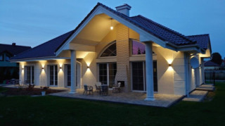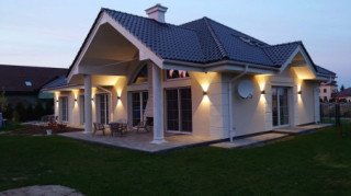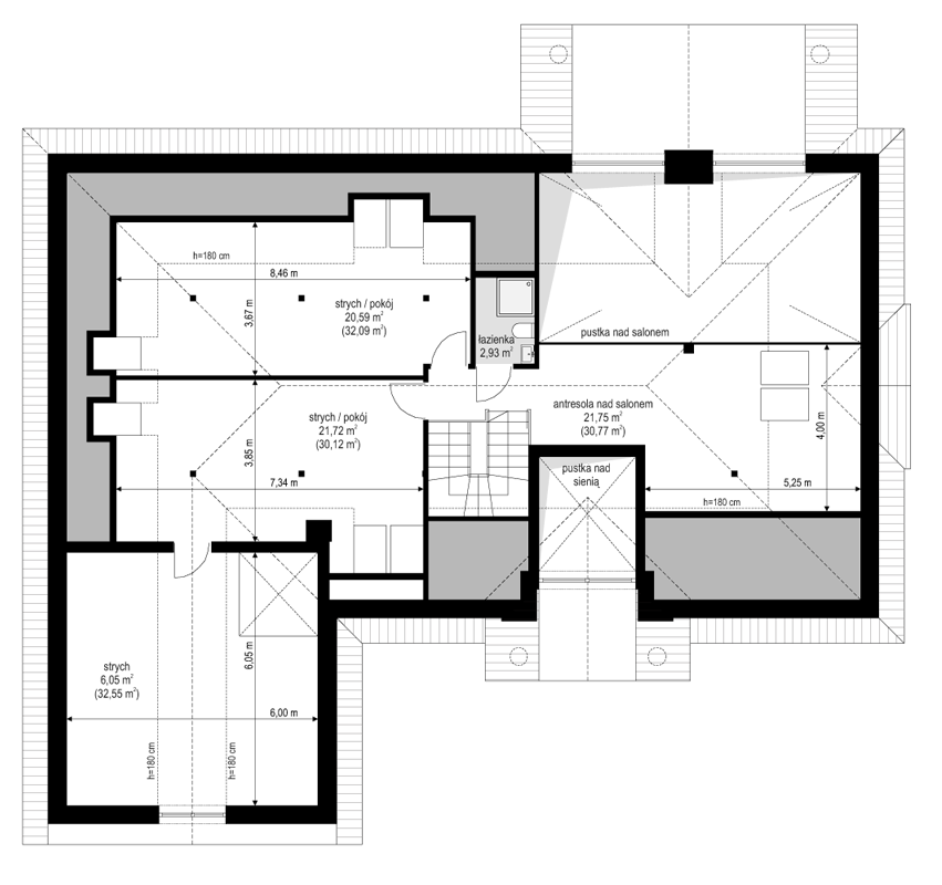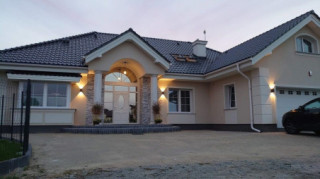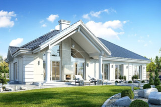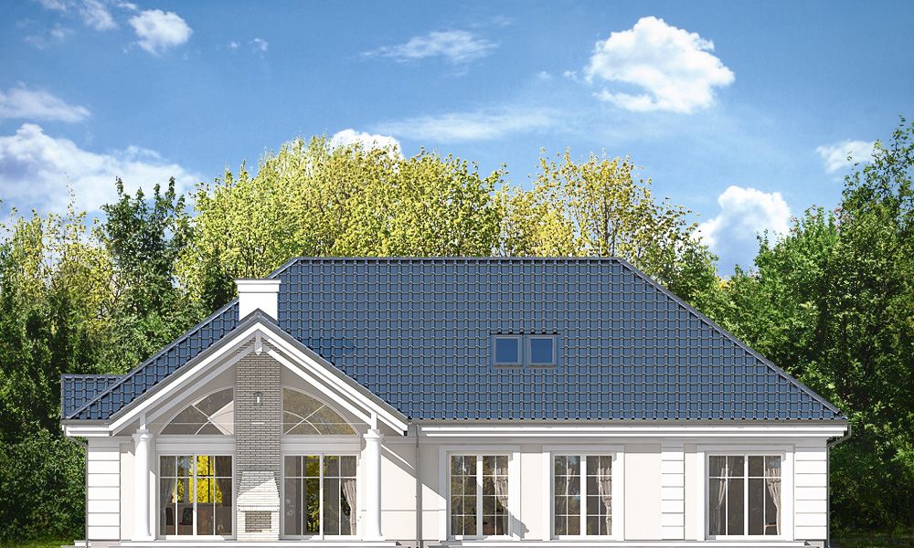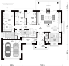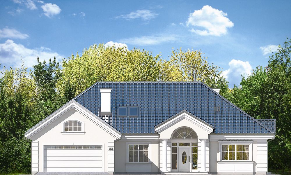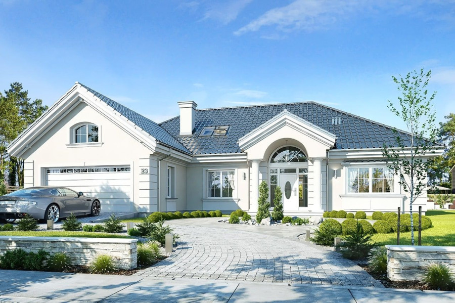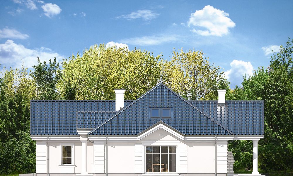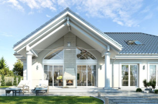 Projekt domu Willa Parkowa 4 jest kolejnym projektem z popularnej serii domów Willa parkowa – Rezydencja parkowa. Dom parterowy, z poddaszem użytkowym, zbudowany na prostokątnej bryle przykrytej czterospadowym dachem, z dobudowaną częścią garażową. Dom zaprojektowany został w nawiązaniu do tradycyjnego rezydencjonalnego stylu, z detalami podkreślającymi reprezentacyjny charakter, dającymi komfort i wrażenie luksusu. Architektura domu jest atrakcyjna, ale też stonowana i dyskretna. Projekt domu Willa Parkowa 4 nawiązuje do tradycji, ale w bardziej nowoczesnym współczesnym ujęciu. Front domu ozdabia piękny półtora kondygnacyjny portyk wejściowy, z bocznymi przeszkleniami drzwi wejściowych i łukowym naświetlem. Reprezentacyjne drzwi wejściowe zapraszają do wnętrza willi. od strony ogrodu atrakcję stanowią duże przeszklenia z poszczególnych pokoi, w tym największe wysokie przeszklenie salonu z pustką, otwierające się na zadaszony taras i ogród. Wnętrze parteru budynku podzielono funkcjonalnie na trzy częsci: cześć dzienną, z salonem z otwarciem przestrzennym na antresolę na poddaszu, kuchnią i holem, następnie na części gospodarczo –garażową, z dostępnymi z przedsionka garażem i kotłownią, oraz część nocną składającą się z trzech sypialni na parterze, oraz dodatkowych dwóch pokoi na poddaszu. Poddasze - strych można dowolnie zagospodarować. Mogą tam się mieścić pokoje, albo też można tam pozostawić nieużytkowy strych nad parterem - dowolnie. Na parterze mamy dwie łazienki i dodatkowe wc, oraz pralnię przy sypialniach. Apartament rodziców ma własną łazienkę i garderobę. Na poddaszu, jeśli strych jest zaadaptowany na poddasze, jest miejsce na dodatkową łazienkę. Dom jest zaprojektowany funkcjonalnie, praktycznie, ma wszystkie potrzebne pomieszczenia dla funkcjonowania pełnej rodziny. Dzięki strychowi jest tutaj zapas dodatkowej przestrzeni do wykorzystania. budynek ma dość prostą konstrukcję, nie powinien być trudny w budowie. Dzięki zastosowaniu energooszczędnych materiałów i instalacji, Dom Willa Parkowa 4 będzie tani w późniejszej eksploatacji. Zapraszamy do obejrzenia wszystkich projektów domów z serii Willa Parkowa: https://www.mgprojekt.com.pl/willa-parkowa, https://www.mgprojekt.com.pl/willa-parkowa-2, https://www.mgprojekt.com.pl/willa-parkowa-3, https://www.mgprojekt.com.pl/willa-parkowa-4, https://www.mgprojekt.com.pl/willa-parkowa-5, https://www.mgprojekt.com.pl/willa-parkowa-6, https://www.mgprojekt.com.pl/willa-parkowa-6-d, https://www.mgprojekt.com.pl/willa-parkowa-7, https://www.mgprojekt.com.pl/willa-parkowa-8-a, https://www.mgprojekt.com.pl/willa-parkowa-8-b, https://www.mgprojekt.com.pl/willa-parkowa-9, https://www.mgprojekt.com.pl/willa-parkowa-10, https://www.mgprojekt.com.pl/willa-parkowa-b, https://www.mgprojekt.com.pl/willa-parkowa-c, https://www.mgprojekt.com.pl/willa-parkowa-d.