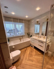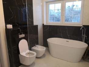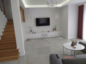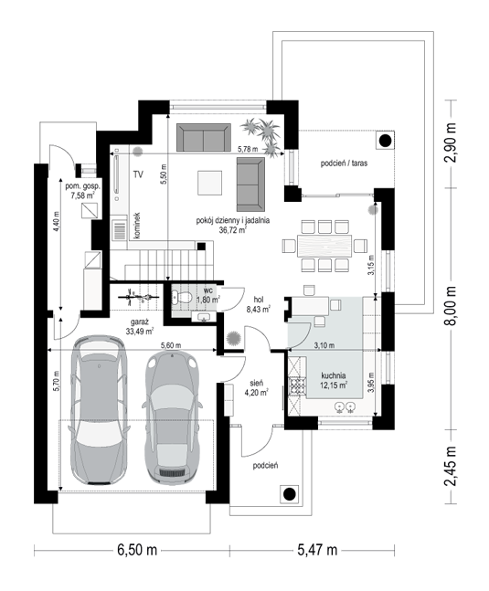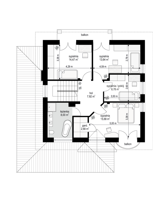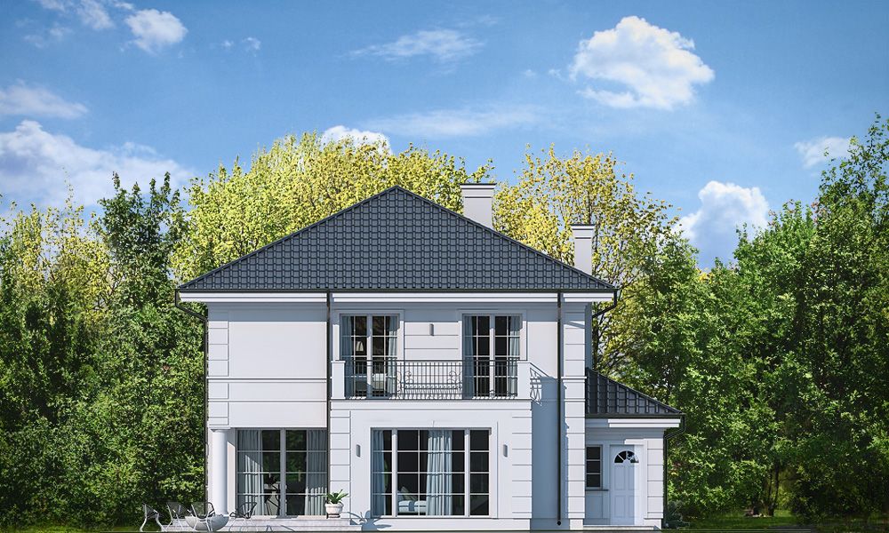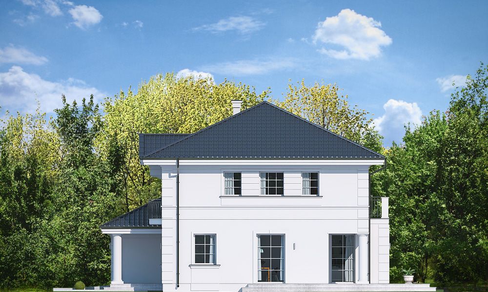 Projekt domu Willa Diamentowa, którego idea zrodziła się w głowie jednego z naszych Klientów takich jak Państwo. Klient zadzwonił do nas pewnego dnia i powiedział: "macie ładne parterowe domy z serii Willa Parkowa, czy Dom na Parkowej, ale ja chciałbym dom piętrowy, nie za duży, najlepiej podobny do projektu Szmaragd, ale o klasycznej architekturze i wyglądzie jak Willa Parkowa". Postanowiliśmy spełnić życzenie i w ten sposób powstał nowy gotowy projekt domu Willa Diamentowa, będąca połączeniem stylu architektonicznego naszych klasycznych parterowych willi i rezydencji, z funkcją i bryłą niedużego piętrowego domu, nadającego się na mniejszą, miejską działkę. Mamy nadzieję, że projekt domu Willa Diamentowa przypadnie Państwu do gustu. Architektura projektu Willa Diamentowa Wygląd zewnętrzny projektu domu Willa Diamentowa to elegancka willa z ozdobnymi detalami. Wnętrze Willi Diamentowej natomiast to funkcjonalna piętrowa kostka, wykorzystująca każdy metr kwadratowy powierzchni budynku. Do domu Willa Diamentowa wchodzimy przez piękne ozdobne drzwi z bocznymi naświetlami do przedsionka, a stamtąd do holu i przestrzeni dziennej. Monumentalnie łukowe okno na piętrze budynku podkreśla reprezentacyjny charakter frontu domu. Całość projektu Willa Diamentowa uzupełniają okno kuchenne i z sypialni rodziców (z balkonikiem). Projekt domu Willa Diamentowa wnętrze W projekcie domu Willa Diamentowa, we wnętrzu na parterze mamy pokój dzienny, kuchnię i jadalnię, połączone ze sobą. Salon w Willi Diamentowej otwarty jest szerokimi przeszkleniami na taras i ogród. Z jadalni projektu Willa Diamentowa przesuwnymi drzwiami wychodzimy do podcienia i na taras. Wygodne dwubiegowe schody stanowią dodatkową ozdobę wnętrza budynku. Na parterze domu mamy jeszcze duży dwustanowiskowy garaż i dużą kotłownię z wyjściem technicznym. Na piętrze zaprojektowano trzy sypialnie: sypialnię rodziców z garderobą, oraz sypialnie dziecięce z szafami wbudowanymi, oraz dodatkowy pokój (gabinet) i łazienkę. Dom Willa Diamentowa, mimo niewielkiej powierzchni i zwartej bryle jest bardzo funkcjonalny. Zawiera cztery pokoje na piętrze, co przy tej powierzchni jest rzadkością, nie wspominając o podwójnym garażu. Budynek Willa Diamentowa zmieści się na wąskiej działce. Projekt domu Willa Diamentowa wbrew pozorom - jest prosty w budowie, ponieważ ma nieskomplikowaną bryłę, a sam koszt budowy domu również nie należy do wysokich. Koszt budowy projektu Willa Diamentowa to 211890 zł za stan surowy zamknięty. Budynek Willa Diamentowa zaprojektowano z energooszczędnych materiałów, dzięki czemu będzie niedrogi w późniejszej eksploatacji. Projekt domu Willa Diamentowa to doskonała propozycja dla Inwestorów potrzebujących domu piętrowego, ale marzących o pięknej klasycznej architekturze, nie chcących powielać oklepanych wzorów "nowoczesnej piętrówki". Projekt domu Willa Diamentowa to dom dla wszystkich, którym się marzy mini klasyczna rezydencja. Istnieje możliwość zamówienia projektu domu Willa Diamentowa w wersji odbicia lustrzanego. Zapraszamy do zapoznania się z pełną ofertą pracowni MG Projekt: https://www.mgprojekt.com.pl/willa-diamentowa, https://www.mgprojekt.com.pl/willa-diamentowa-wariant-b, https://www.mgprojekt.com.pl/willa-diamentowa-wariant-c, https://www.mgprojekt.com.pl/willa-diamentowa-wariant-b.