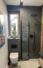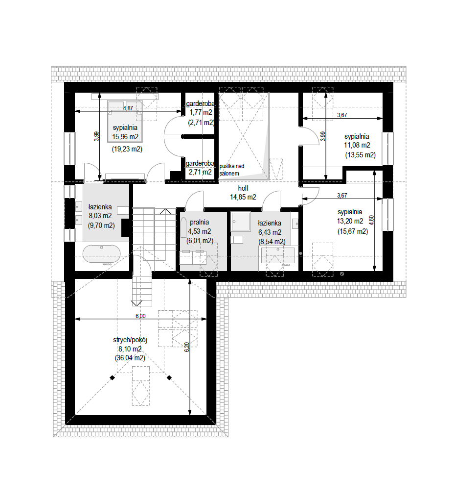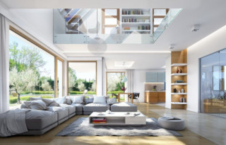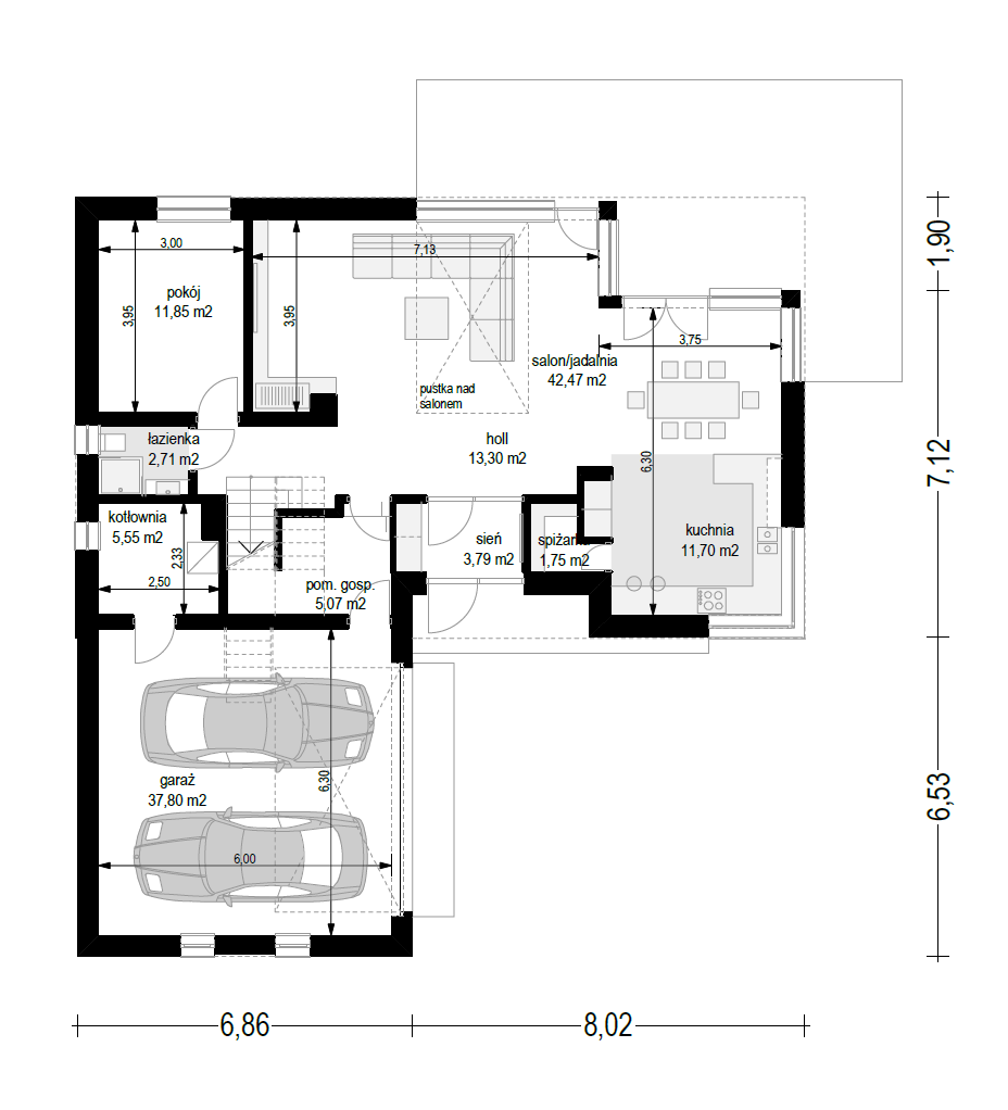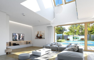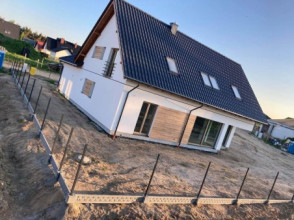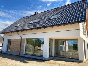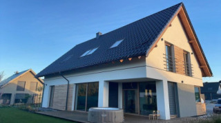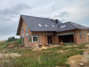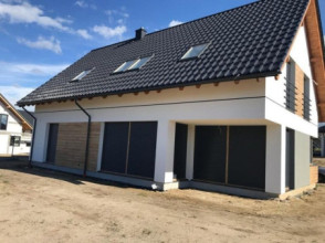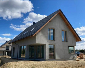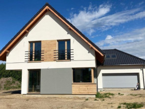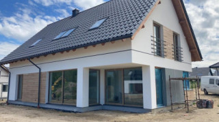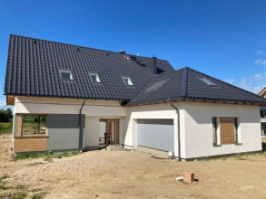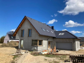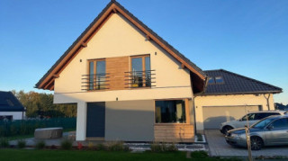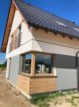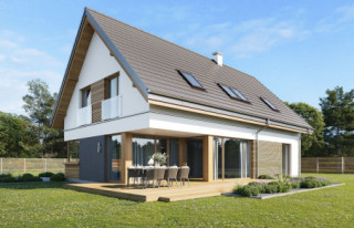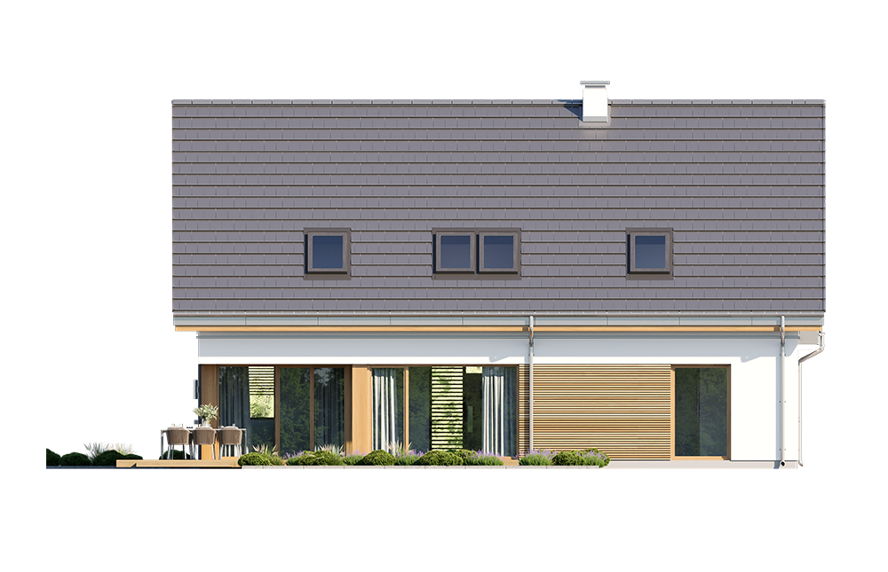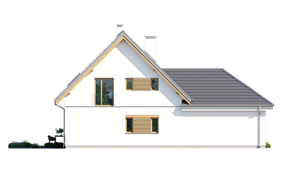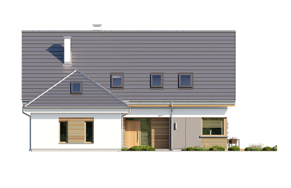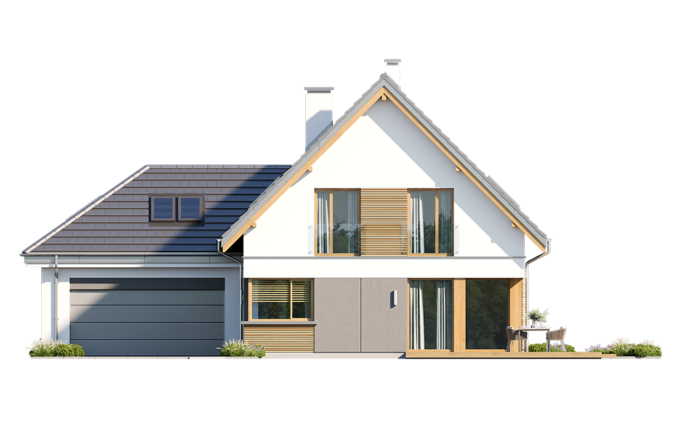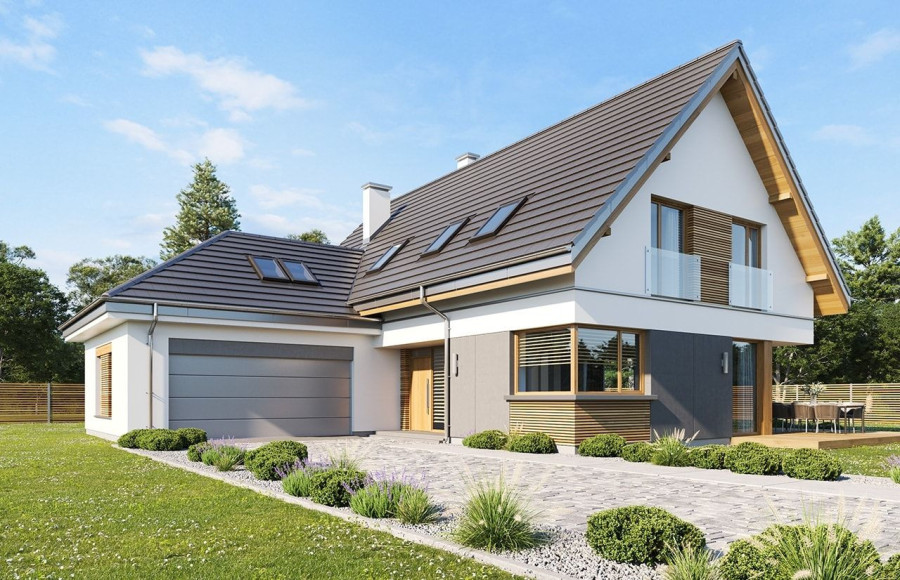 Wariant domu z doprojektowanym dachem nad garażem, zmiana lokalizacji stolarki okiennej.