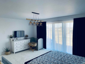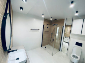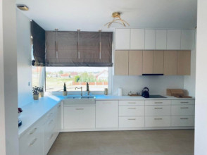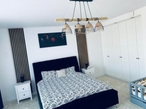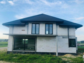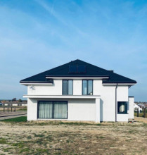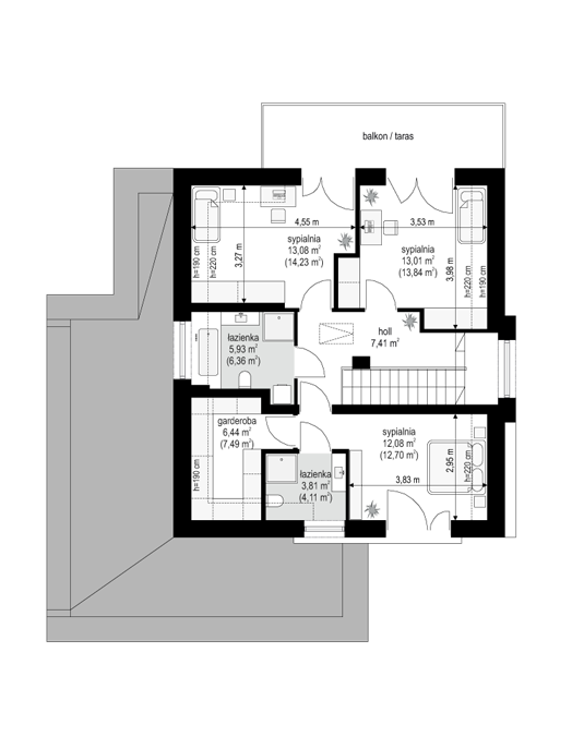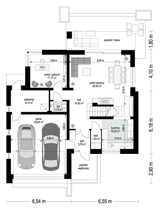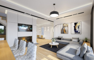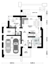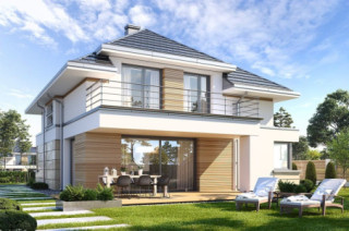 Projekt domu Oszust to projekt domu jednorodzinnego dla 4- 5-cioosobowej rodziny. Gotowy projekt domu Oszust jest propozycją dla Klientów pragnących wybudować budynek piętrowy, ale posiadających działkę, na której przepisy zakazują budowy domu z piętrem. Wiele planów miejscowych w naszym kraju zakłada takie parametry: dom z poddaszem użytkowym, dach o kącie nachylenia 35 stopni, oraz maksymalna wysokość domu wynosząca 8,5 metra. Postaraliśmy się więc wpasować w tak niekorzystne założenia dom Oszust, który mimo wszystko będzie praktycznie "piętrówką". Stąd oryginalna nazwa projektu - Oszust, ponieważ przechytrzamy projektem domku Oszust nieprzychylne zapisy urbanistyczne. Projekt domu Oszust architektura Architektonicznie projekt domu Oszust wygląda jak nowoczesny piętrowy dom. Dzięki różnicy w wysokości dachu na piętrze mieszczą się normalne duże okna doświetlające pokoje górnej kondygnacji. Zwarta bryła projektu domu Oszust przykryta jest czterospadowym dachem podzielonym wizualnie poziomymi pasami wykończonymi kontrastującymi materiałami. W projekcie domku Oszust część garażowa budynku dobudowana jest jako parterowa zakończona płaskim dachem, lub tarasem. Wnętrze w projekcie domu Oszust Wnętrze domu Oszust na parterze mamy dużą jednoprzestrzenną część dzienną z wyeksponowaną na środku salonu ścianą kominkowo – telewizyjną, ze schodami na piętro w tle, wygodną kuchnię ze spiżarnią, dodatkowy pokój – gabinet i wc. Z sieni przechodzimy do podwójnego garażu i obszernego pomieszczenia gospodarczego. Duże przeszklenia salonu otwierają wnętrze domu Oszust na zadaszony taras i otaczający ogród. Na górze mamy oddzielny apartament rodziców z własną łazienką i garderobą, oraz dwie sypialnie dziecięce z ogólną łazienką. Na poddaszu prawie na całej powierzchni uzyskano wysokość stania, zatem nie ma skosów utrudniających poruszanie się. Projekt domu Oszust mimo w sumie niewielkiej powierzchni mieści w sobie cały potrzebny program funkcjonalny do wygodnego życia kilkuosobowej rodziny. Dom Oszust zaprojektowano z nowoczesnych energooszczędnych materiałów. Dzięki temu jednorodzinny projekt domku Oszust będzie tani w utrzymaniu, a jednocześnie niedrogi i dość łatwy w budowie. Autorska pracownia architektoniczna MGProjekt dysponuje też odbiciem lustrzanym projektu. Zapraszamy do zapoznania się z pełną ofertą pracowni MG Projekt: https://www.mgprojekt.com.pl/oszust, https://www.mgprojekt.com.pl/oszust-wariant-b, https://www.mgprojekt.com.pl/oszust-2.