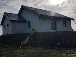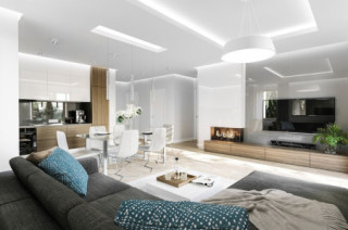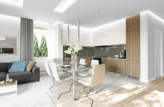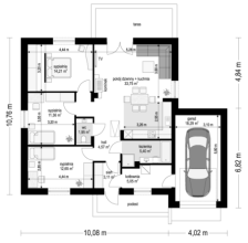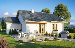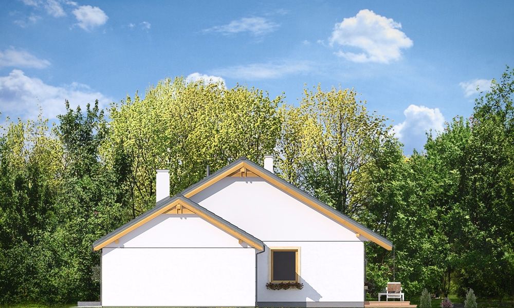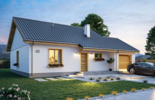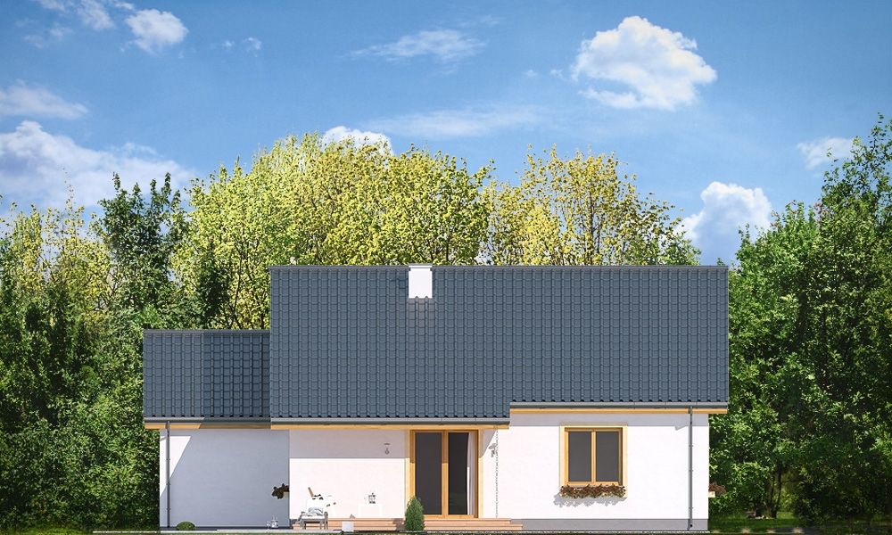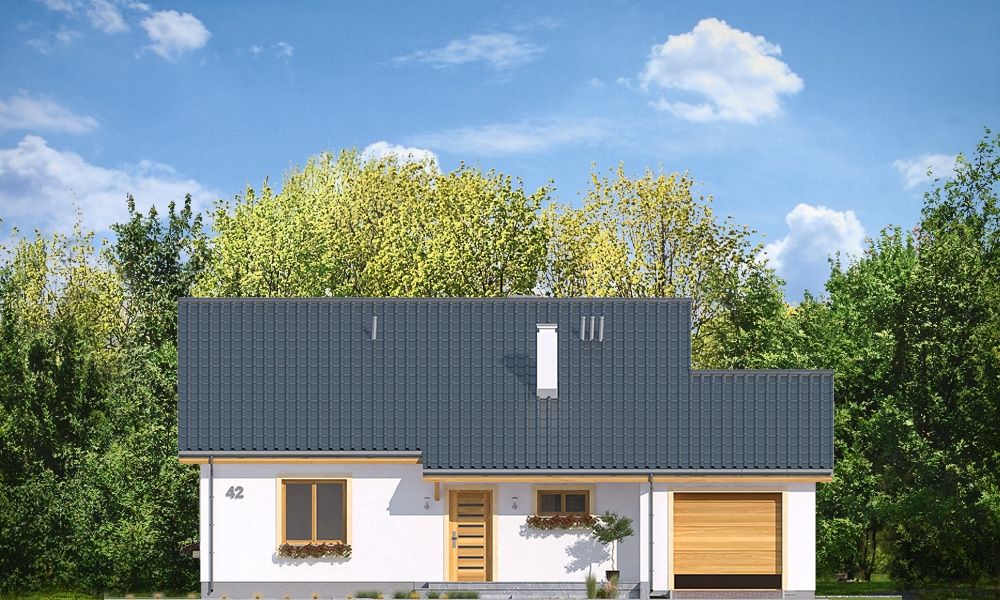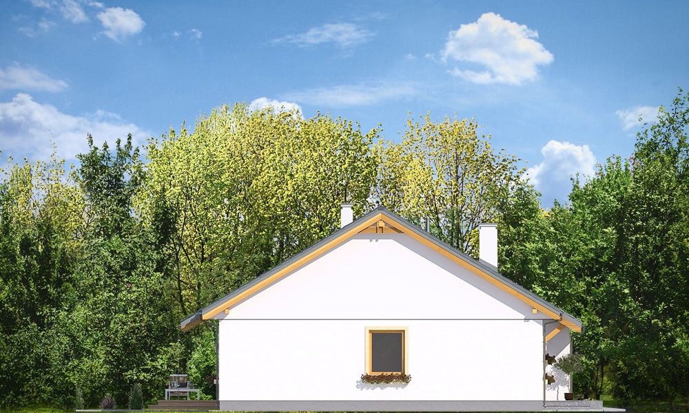 Projekt domu Zosia 8 – czyli kolejny projekt z serii „Zosia” – wersja powiększona w stosunku do bazowego projektu, zbudowaną na kwadratowym planie o wymiarach 10,7 x 10,7 m, z dodatkowym garażem. Dom ma prostą bryłę i konstrukcję, i spokojną bezpretensjonalną architekturę. Budynek dzięki swojej prostocie jest łatwy w budowie, a przez to niedrogi. Jednocześnie projekt domu Zosia 8 spełnia wymagania komfortowego mieszkania dla czteroosobowej rodziny. Dom wieńczy dwuspadowy dach o kącie 30 stopni. Nad parterem przewidziano strop drewniany belkowy i krokwiową więźbę dachową, co tworzy dużą przestrzeń strychową, na którą dostajemy się schodkami drabinkowymi. Do domu wchodzimy przez przedsionek z dużą szafą do holu i salonu. Z boku przy wejściu przechodzimy do kotłowni i dalej do garażu. Kotłownia została przewidziana w projekcie jako gazowa, ale łatwo można ją przerobić na kotłownię na paliwo stałe. Dalej mamy łazienkę, a następnie przestrzeń dzienną z salonem i aneksem kuchennym - o łącznej powierzchni około 35 m² . Z lewej strony mamy trzy sypialnie, w tym sypialnię rodziców z garderobą Z salonu wydostajemy się do ogrodu i na taras. Strych nad parterem można przeprojektować na poddasze użytkowe, dodając schody na górę. Dom jest bardzo funkcjonalny i ma rozbudowany program pomieszczeń. Nie ma tutaj zmarnowanej przestrzeni - wszystko jest praktycznie wykorzystane. Dom ma bezpretensjonalną i przyjemną dla oka stylistykę. Zdecydowaną zaletą domków z serii „Zosia” jest ich prostota i funkcjonalność, przekładające się na maksymalny efekt inwestycji uzyskany za niewielkie pieniądze. Każdą kolejną wersję domu z tej serii staramy się projektować jeszcze lepiej i sensowniej. Dom Zosia 8 jest zaprojektowany jako energooszczędny, bardzo dobrze ocieplony. Będzie dzięki temu tani w późniejszej eksploatacji. Zachęcamy do zapoznania się z pełną ofertą pracowni MG Projekt tej serii: projekt domu Zosia, projekt domu Zosia 2, projekt domu Zosia 3, projekt domu Zosia 4, projekt domu Zosia 5, projekt domu Zosia 6, projekt domu Zosia 7, projekt domu Zosia 7B. Zapraszamy!