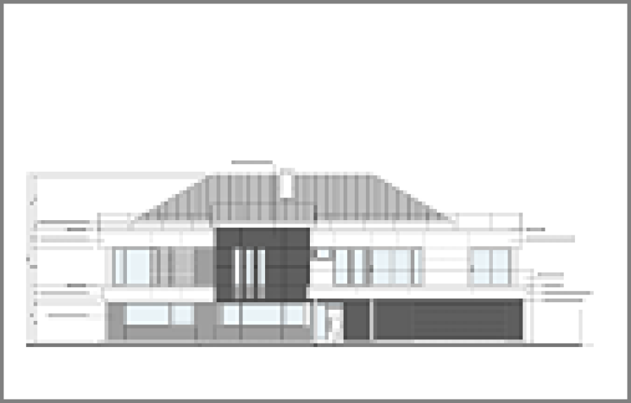 Wariant projektu z płytą fundamentową, dodatkową lukarną i tarasem na dachu. Zmieniona ilość okien.