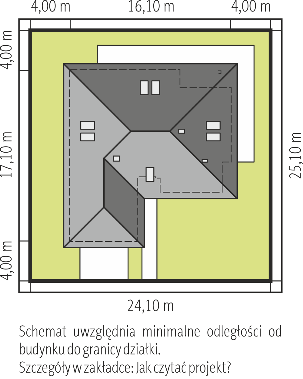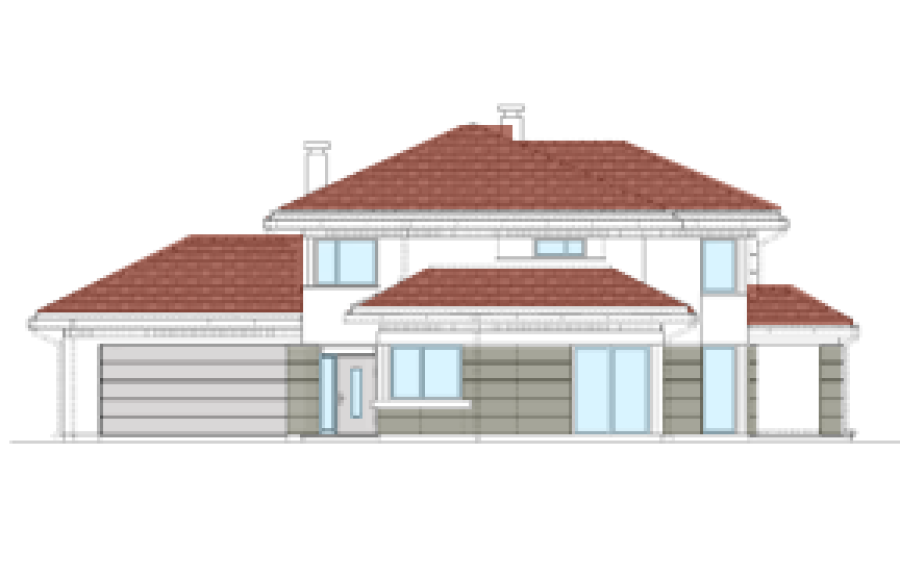 Wariant projektu z powiększony garażem i częściowym podpiwniczeniem.