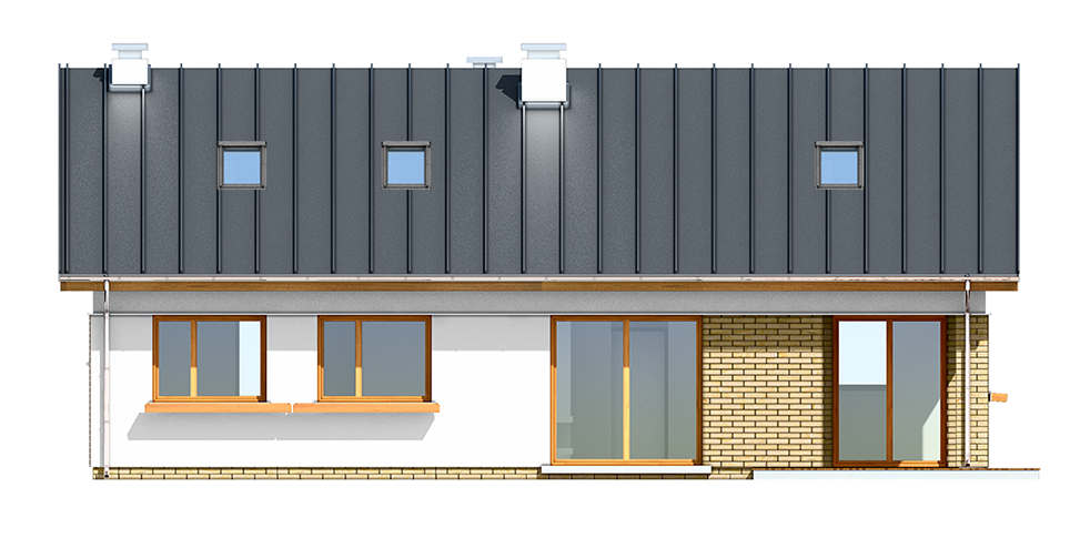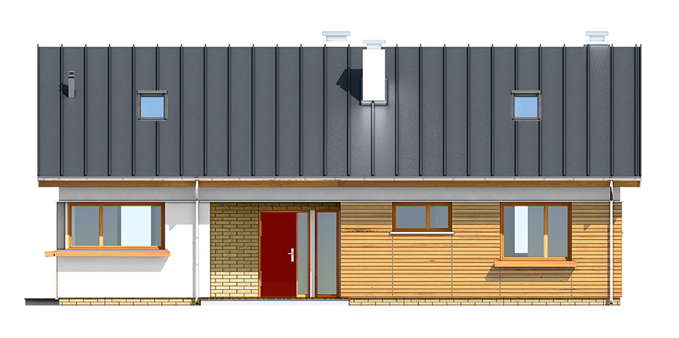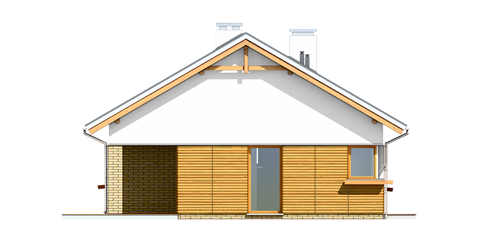 Wariant domku ze stropem Teriva nad parterem oraz z jednoprzestrzennym strychem do zagospodarowania.
