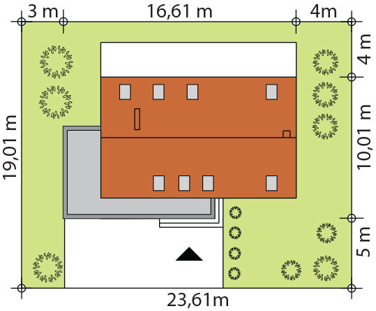 Wariant projektu poszerzony o 1 m od strony garażu.