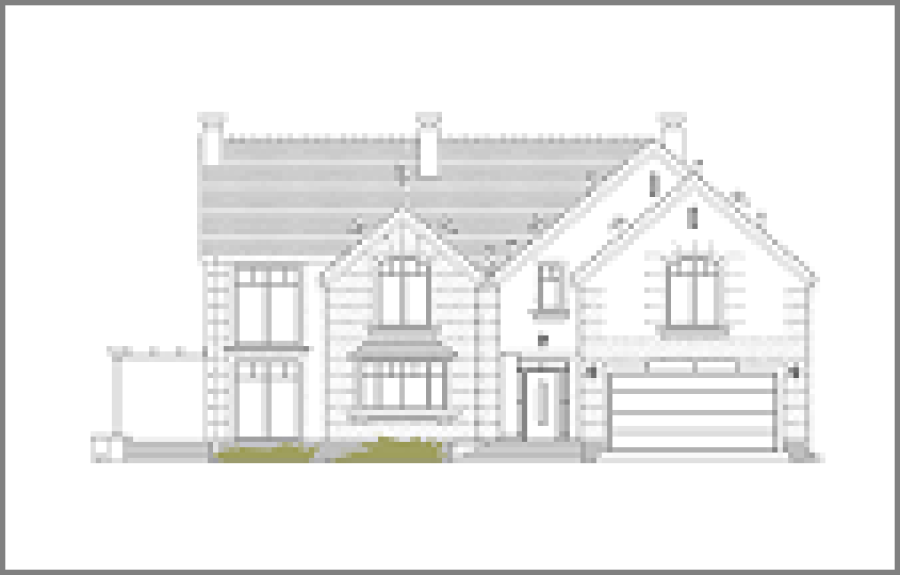Wariant projektu zwężony o 60 cm, zlikwidowaną ścianą nośną, ze zmienionymi oknami na poddaszu z półokrągłych na prostokątne.