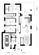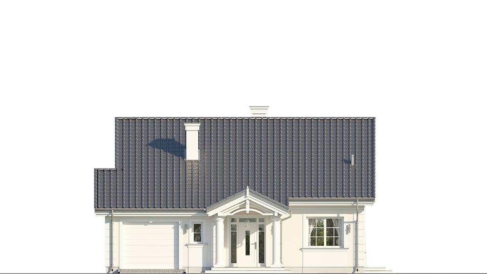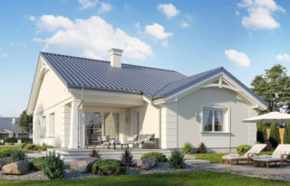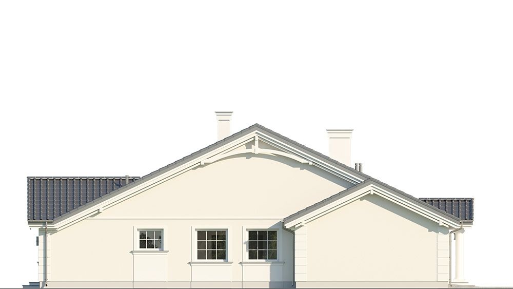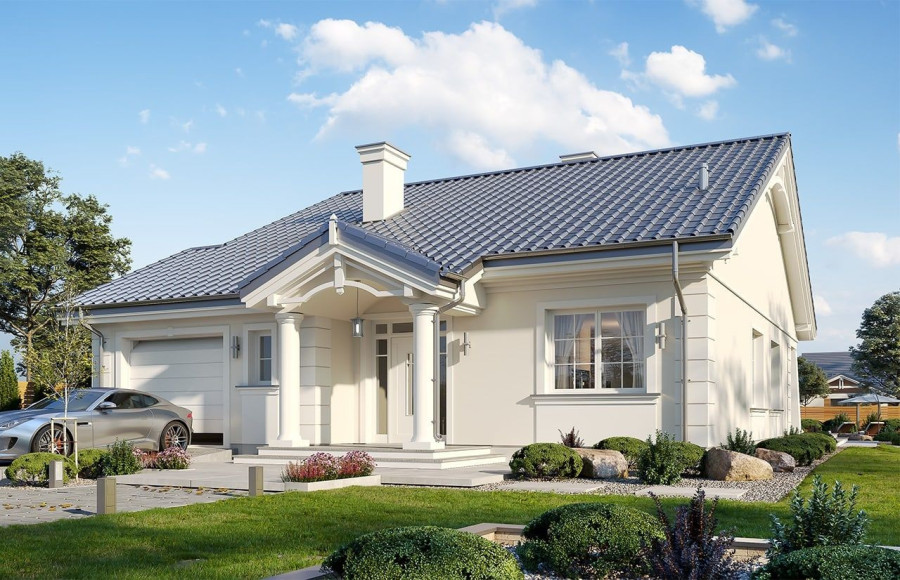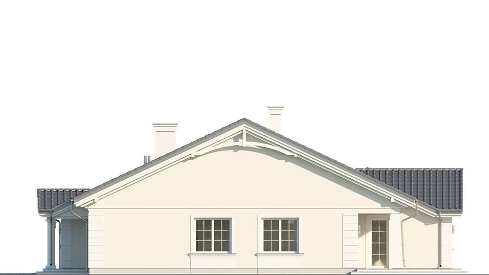 Projekt domu Parterowy Wąski to projekt parterowego domu jednorodzinnego, nawiązującego do cieszących się popularnością domów z serii ”Parterowy”. Tym razem proponujemy dom na wąską działkę o szerokości poniżej 20 m - prezentujemy dwie wersje architektury: tradycyjną - Parterowy Wąski 1 oraz nowoczesną – Parterowy Wąski 2. Architektura domu Parterowy Wąski W projekcie domu Parterowy Wąski bryła budynku jest prostokątna, przykryta dwuspadowym dachem, z dobudowanym gankiem wejściowym, oraz wysuniętą sypialnią przykrytą poprzecznym dachem. Elewację frontową projektu Parterowy Wąski ozdobiono pięknym wejściowym portykiem z kolumnami, przez który - przez drzwi z naświetlami wchodzimy do wnętrza. Od strony ogrodowej projekt domu Parterowy Wąski ma szerokie przeszklone drzwi z salonu na taras i podcień. Tradycyjna architektura projektu Parterowy Wąski, zaakcentowane wejście, okna z podziałami, przywołują wrażenie stylowej willi - niewielkiej ale bardzo reprezentacyjnej. Projekt domu Parterowy Wąski wnętrze W projekcie domu jednorodzinnego Parterowy Wąski wnętrze parteru podzielone zostało na część dzienną - z salonem, cześć gospodarczą - z garażem i kotłownią, oraz sypialnie. Do wnętrza budynku wchodzimy wygodnym przedsionkiem, do holu połączonego z salonem z jadalnią i kuchnią ze spiżarką. Salon w projekcie domku Parterowy Wąski ma podniesiony aż do dachu sufit nad częścią z meblami wypoczynkowymi, kominkiem i ścianą TV. Na lewo od wejścia z przedsionka projektu Parterowy Wąski przechodzimy do kotłowni i garażu. Przechodząc holem i korytarzem wgłąb domku, trafiamy do sypialni - rodziców z garderobami, dwóch dziecięcych i dużej łazienki. W projekcie domu Parterowy Wąski nad parterem mamy do dyspozycji duży strych, który może być przestrzenią magazynową, lub po doprojektowaniu schodów można go zaadaptować na dodatkowe poddasze użytkowe powiększając w ten sposób powierzchnię użytkową projektu domku Parterowy Wąski – jeśli oczywiście zajdzie taka potrzeba. Parterowy Wąski budowa Niewielki projekt domu Parterowy Wąski został zaprojektowany jako budynek energooszczędny. Jego bardzo dobre izolacje, nowoczesne instalacje sprawią, że koszt utrzymania budynku będzie niewielki. Projekt domu Parterowy wąski powinien przypaść do gustu osobom, które chcą postawić niewielki, ale w pełni wyposażony dom jednorodzinny, w tradycyjnej architekturze, a dysponują dość wąską parcelą. Projekt domu Parterowy Wąski ma prostą w budowie bryłę - dom będzie więc łatwy do wybudowania i poradzi sobie z tym każdy wykonawca. W wersji podstawowej projekt domu Parterowy Wąski ma nad parterem strop żelbetowy monolityczny i tradycyjną więźbę dachową, ale projekt budynku występuje też w drugiej wersji - bardziej ekonomicznej - z prefabrykowaną więźbą dachową i stropem z wiązarów kratownicowych, których wykonanie z montażem pracownia MG Projekt zaleca w naszym zakładzie prefabrykacji MG Domy. Gotowy projekt domu Parterowy Wąski można zamówić także w wersji odbicia lustrzanego.
