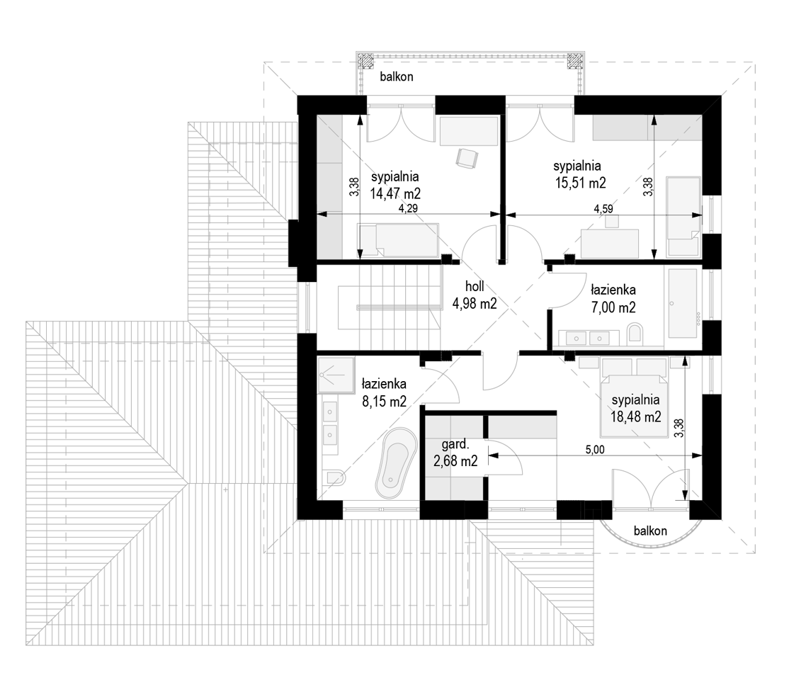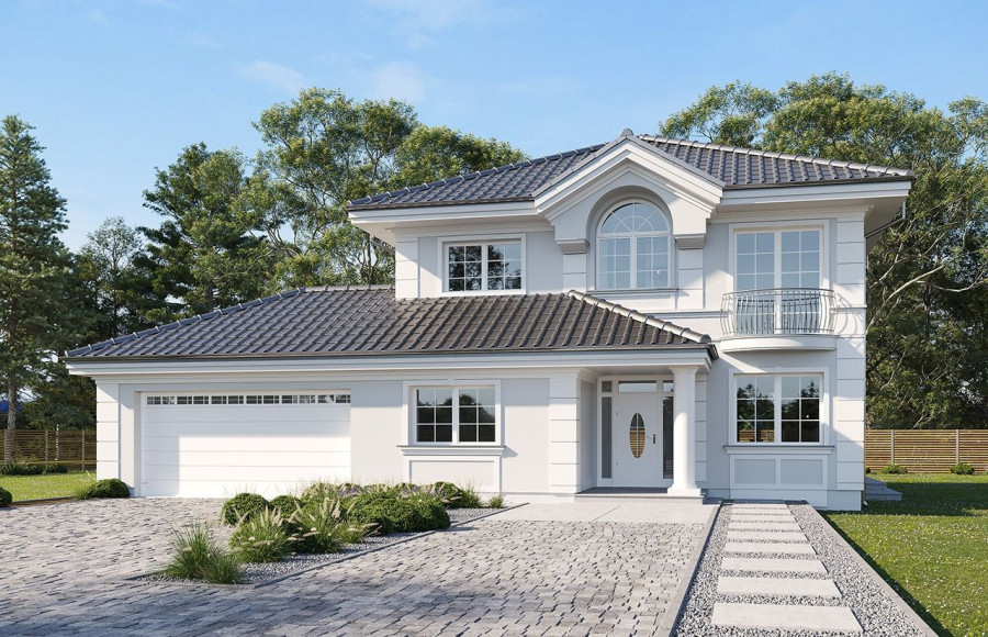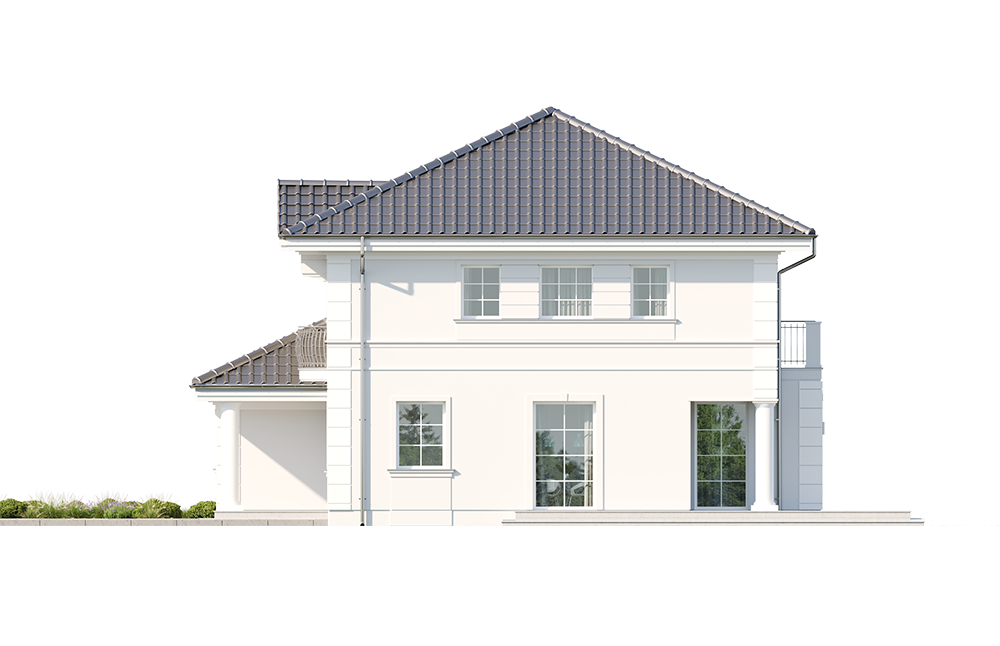 Wariant domku w wersji z przesuniętym garażem w lewo i wygospodarowaną pralnią + gabinetem. Zapraszamy do zapoznania się z pełną ofertą pracowni MG Projekt: projekt domu Willa Diamentowa, projekt domu Willa Diamentowa wariant B, projekt domu Willa Diamentowa wariant C, projekt domu Willa Diamentowa wariant D.