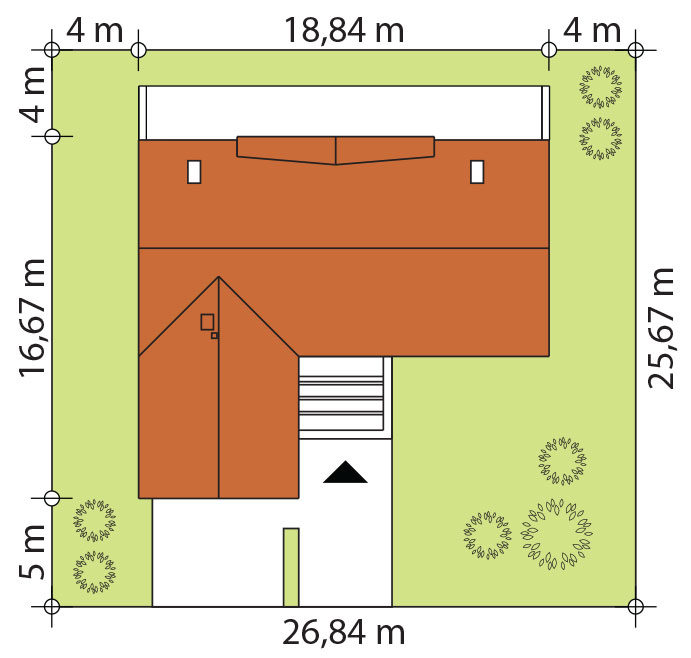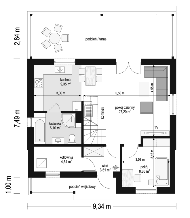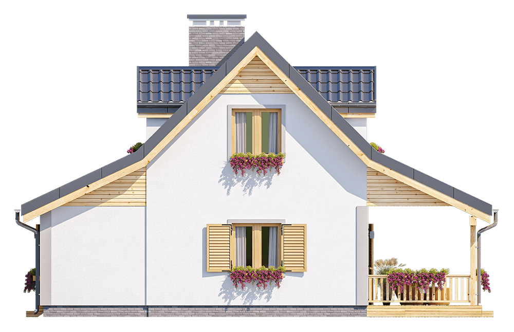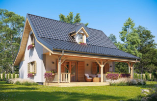 Budynek w technologii szkieletowej z powiększoną łazienką i pomniejszoną kotłownią.