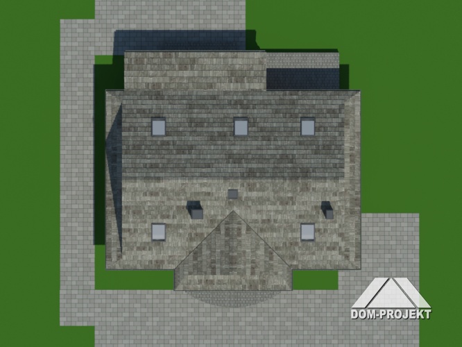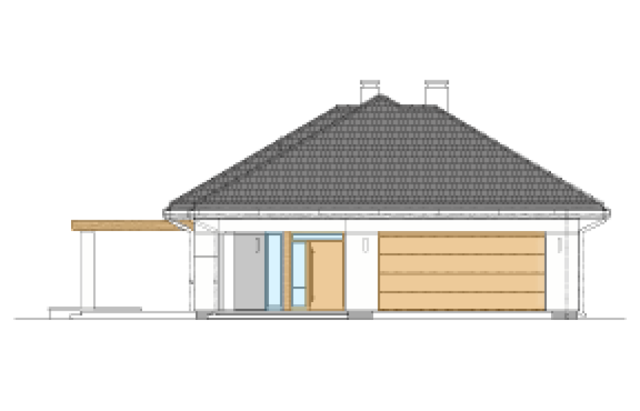 Wariant B z wiązarami prefabrykowanymi (wersja ekonomiczna) zamiast tradycyjnej więźby ciesielskiej, ze zwężonym wykuszem w kuchni o 40 cm.