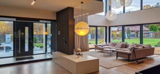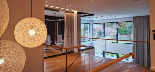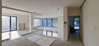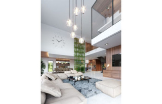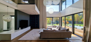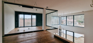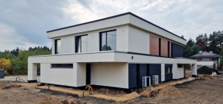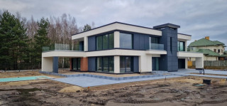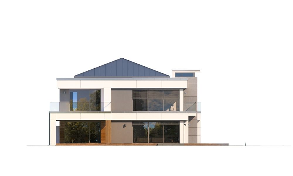 Projekt domu Willa Floryda 5 jest kolejnym z projektów luksusowych rezydencji z serii „Willa Floryda”. Dom jest komfortową, piętrową willą, przeznaczoną na działkę z bocznym lub frontowym ogrodem. Architektura domu łączy w sobie nowoczesną formę z funkcjonalnie rozwiązanym wnętrzem. Stylowa urozmaicona bryła, oraz reprezentacyjne wnętrze podkreślą status i dobry gust właścicieli. Rozczłonkowana piętrowa sylwetka domu przykryta jest czterospadowym dachem, praktycznie niewidocznym z wysokości oczu człowieka, dając wrażenie budynku z płaskim dachem, przy – tak naprawdę zadaszeniu spadzistym ( częstym wymogu w zapisach warunków zabudowy ). Elewacje podzielone zostały na pasy okien przeplecionych białymi belkami oddzielającymi kondygnacje, wprowadzają rytm i porządek. Do budynku wchodzimy eleganckimi szerokimi drzwiami wejściowymi z bocznymi naświetlami pod zadaszeniem balkonu. Front domu ozdabia tutaj pionowa dwukondygnacyjna ściana z naświetlem, duże okna w narożnikach elewacji, oraz wygodna wiata przed trzystanowiskowym garażem. Elewacją ogrodową jest w Willi Florydzie 5 elewacja boczna domu z dużym zadaszonym tarasem - miejscem wieczornych biesiad, oraz wielkimi narożnymi przeszkleniami salonu. Wnętrze parteru to przede wszystkim ogromna jednoprzestrzenna powierzchni połączonych pomieszczeń holu, salonu, jadalni i kuchni. To prawie 150 m² swobodnej, otwartej przestrzeni dziennej. Mieszczą się tutaj reprezentacyjne schody na piętro, salon z dużą pustką i otwarciem na antresolę powyżej, z rozkosznym kompletem wypoczynkowym i ścianą telewizyjną. Mamy tutaj jadalnię ze stołem na 14 lub więcej osób i pięknym kominkiem gazowym, mamy kuchnię z wyspą, a na środku ogródek na reprezentacyjne rośliny i mnóstwo miejsca na ekspozycję wyjątkowych obrazów i innych dzieł sztuki. Wszystko skąpane jest w świetle szerokich dwukondygnacyjnych przeszkleń. Na zapleczu za kuchnią mamy pomieszczenia gospodarcze jak pralnia, spiżarnia, czy kotłownia. Przy wejściu : szatnię, toaletę i przejście do trzystanowiskowego garażu. Piętro domu to z kolei sypialnia master z garderobami i łazienką, oraz z dodatkowym rezerwowym pokojem i dwie sypialnie dziecięce z własną drugą łazienką. Nad salonem wisi pięknie przeszklone pomieszczenie biura domowego lub biblioteki, oraz otwierająca się na parter i na ogród antresola. Wszystkie pokoje na piętrze mają swoje wyjścia na okalające tarasy. Sypialnia master ma osobny bardzo duży taras z widokiem na ogród. Willa Floryda 5 to kolejna propozycja dużego luksusowego domu dla odważnych Inwestorów, chcących spełnić swoje marzenia o wyjątkowym miejscu do życia, chcących cieszyć się nietuzinkową - nowoczesną zarazem niekrzykliwą a gustowną architekturą. Zapraszamy do zapoznania się z pełną ofertą pracowni MG Projekt: projekt domu Willa Floryda, projekt domu Willa Floryda 2, projekt Willa Floryda 3, projekt domu Willa Floryda 4, projekt Rezydencja Floryda, projekt Rezydencja Floryda 2, projekt domu Willa Floryda 6, projekt domu Willa Floryda 7, projekt domu Willa Floryda 8.