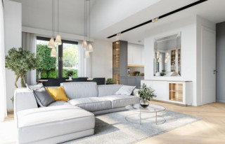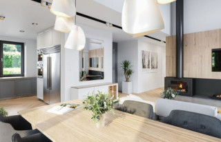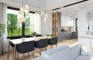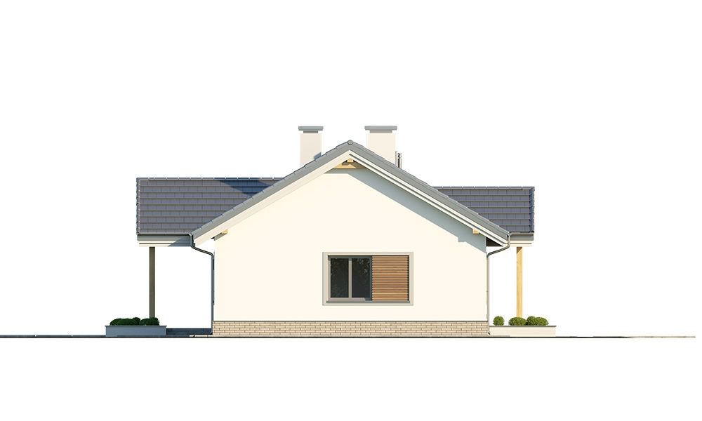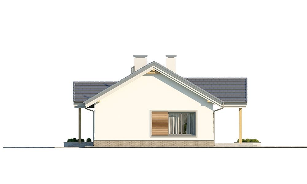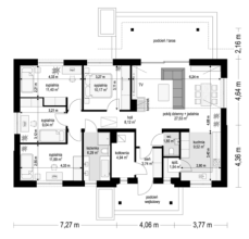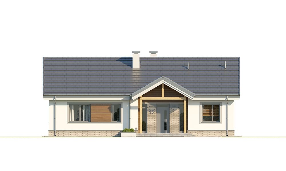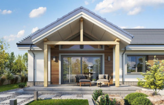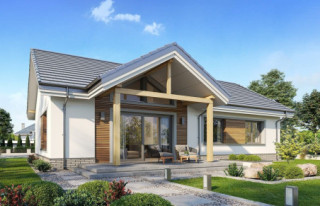 Projekt domu Willa Rodzinna to projekt z serii Willi Rodzinnych. Jest to wygodny parterowy dom dla 4- 5-osobowej rodziny, z czterema sypialniami. Gotowy projekt domku Willa Rodzinna został zaprojektowany na planie prostokąta, przykryty dwuspadowym dachem i urozmaicony dwoma poprzecznymi zadaszeniami. Zadaszenie Willi Rodzinnej od frontu to szeroki ganek wejściowy z elegancko rozplanowanymi drzwiami frontowymi i bocznymi naświetlami, rozdzielonymi fragmentami ceglanych ścian. Zadaszenie Willi Rodzinnej od strony ogrodu to oprawa dla szerokich przesuwnych drzwi na taras oraz górnego trójkątnego naświetla pustki nad salonem. Willa Rodzinna bryła domu Proporcje bryły, zastosowane materiały i detale dają w efekcie wrażenie solidności, wysokiej jakości architektury i kojarzą się z komfortowym życiem w parterowym domu jednorodzinnym - blisko ogrodu. Architektura domu Willa Rodzinna jest ponadczasowa, ale niepozbawiona oryginalnych detali, wyróżniających Willę Rodzinną spośród innych domów o podobnym charakterze. Z pewnością na gościach zrobi duże wrażenie zarówno reprezentacyjne wejście Willi Rodzinnej, jak i pustka nad salonem i ogromne przeszklenia otwierające wnętrze pokoju dziennego na ogród. Willa Rodzinna wnętrze Wnętrze projektu domku Willa Rodzinna podzielono na część dzienną - z salonem, holem i kuchnią, oraz część nocną. W domu Willa Rodzinna przewidziano aż cztery pokoje sypialne – rzadkość w tego rodzaju gotowych projektach. Projekt można oczywiście podzielić inaczej - na przykład na 3 pokoje, lub jeden z nich przeznaczyć na domowe biuro. Kotłownia w projekcie domku Willa Rodzinna dostępna z przedsionka może być zasilana kotłem gazowym lub pompą ciepła, ale też i kotłem na paliwo stałe – stosownie do wyboru Inwestora. Blisko 40-metrowa przestrzeń dzienna z kuchnią, kącikiem jadalnym i wypoczynkowym ze ścianą telewizyjno-kominkową stanowi centrum domostwa. Otwarty sufit nad salonem Willi Rodzinnej dodaje wrażenie przestrzeni wnętrza i uatrakcyjnia je. Willa rodzinna to doskonała propozycja dla osób planujących budowę wygodnego i funkcjonalnego parterowego domu, prostego w budowie, oraz taniego i bezproblemowego w późniejszej eksploatacji. Willa Rodzinna to propozycja na projekt domu energooszczędnego, o zwartej bryle, jednocześnie posiadającego swój niepowtarzalny oryginalny styl. Projekt domu Willa Rodzinna można zamówić także w wersji odbicia lustrzanego. Zachęcamy również do zapoznania się z projektem domu Willa Rodzinna 2 autorstwa MGProjekt.