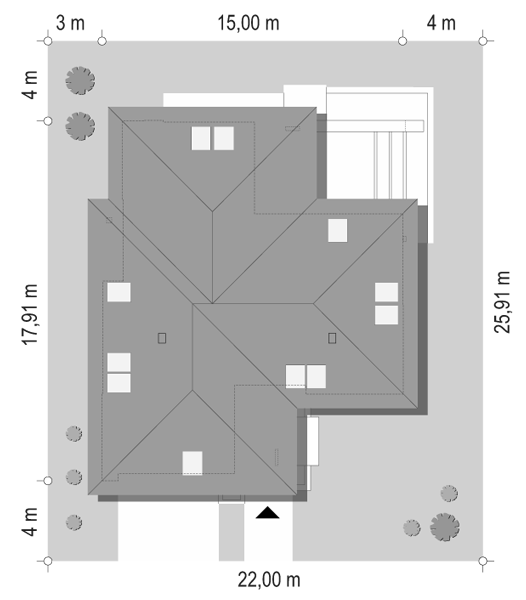 Projekt domu Tofi 4 to nowa, udoskonalona wersja cieszącej się dużą popularnością serii projektów Tofi. Wyróżniającym, oraz przykuwającym wzrok elementem jest wyjątkowa elewacja. Kombinacja materiału w stylu piaskowca z kolorowymi akcentami sprawia, że dom nabiera niepowtarzalnego charakteru, a także elegancji. Pokrycie dachu, grafitową dachówką nadaje budynkowi współczesnego wyglądu. Bryła domu jest prosta, ale urozmaicona efektownym wykuszem, oraz wejściem z zadaszonym lukarną balkonem.