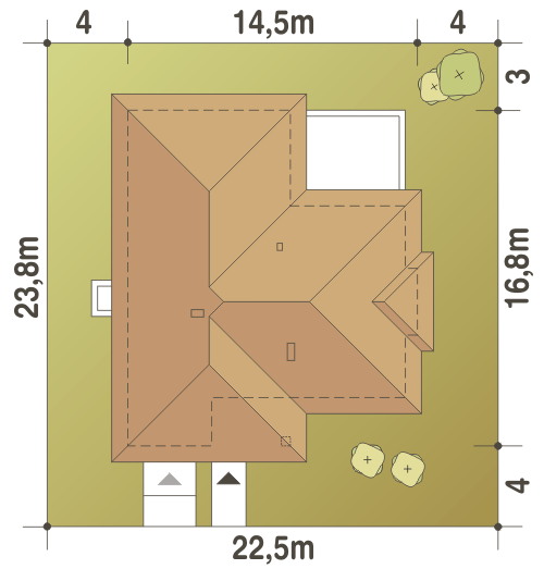 Projekt domu Cytrus 6 to projekt domu parterowego z dużymi możliwościami. Nowoczesny charakter bryły budynku powoduje, że na długo zapada w pamięć. Ten projekt domu jest wręcz stworzony dla 5-6cioosobowej rodziny. Na szczególną uwagę zasługuje podział części nocnej w tym projekcie. Główna sypialnia rodziców została zaprojektowana w oddzielnej części domu niż pozostałe 3 sypialnie. Dzięki takiemu rozwiązaniu, każdy z mieszkańców domu, może cieszyć się ciszą i spokojem. Piękny przestronny salon z miejscem na duży wspólny stół, w ciepłe dni można dodatkowo powiększyć otwierając drzwi na taras. Dla miłośników gotowania na pewno przypadnie do gustu kuchnia, która posiada niezliczoną liczbę blatów do kulinarnych eksperymentów. Szeroki dwustanowiskowy garaż pomieści również nie jeden rower lub kajak.Ściany: 2-warstwowe - beton komórkowy + styropian, Stropy: żelbetowe, wylewane, Dach: blacha na rąbek stojący Ruukki Classic, kąt nachylenia 30°