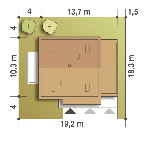 Nieduży dom o nowoczesnej, eleganckiej architekturze, przeznaczony dla rodziny 4-5-osobowej. Parter mieści w sobie pełen program funkcjonalny: przestronną, jasną strefę dzienną otwartą na ogród oraz strefę nocną z trzema sypialniami i łazienką. Bardzo ustawne pokoje i sporo wnęk na szafy ułatwiają utrzymanie porządku.