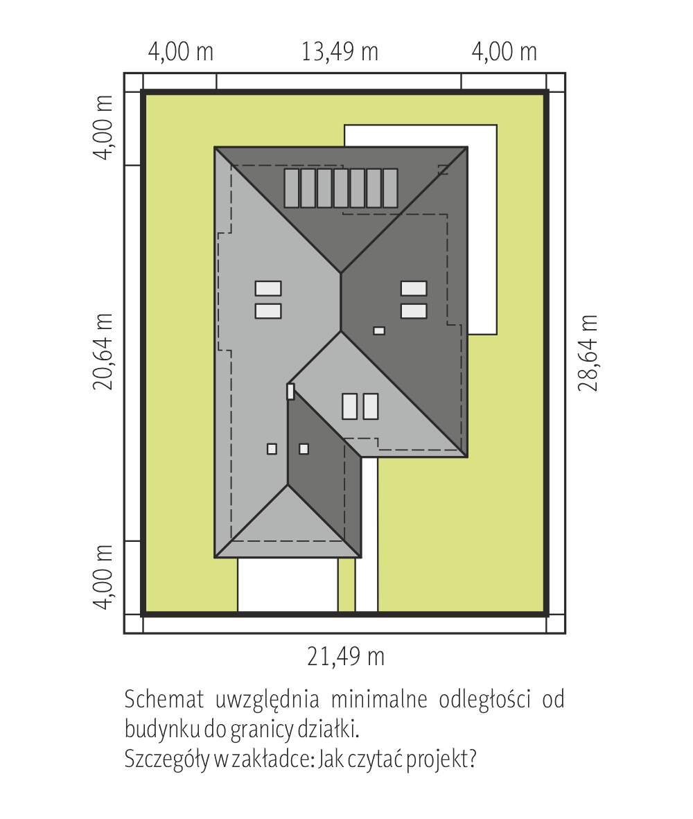 Przestronny dom parterowy z garażem od frontu. Do domu ułatwia dostęp wygodna pochylnia przed drzwiami wejściowymi.