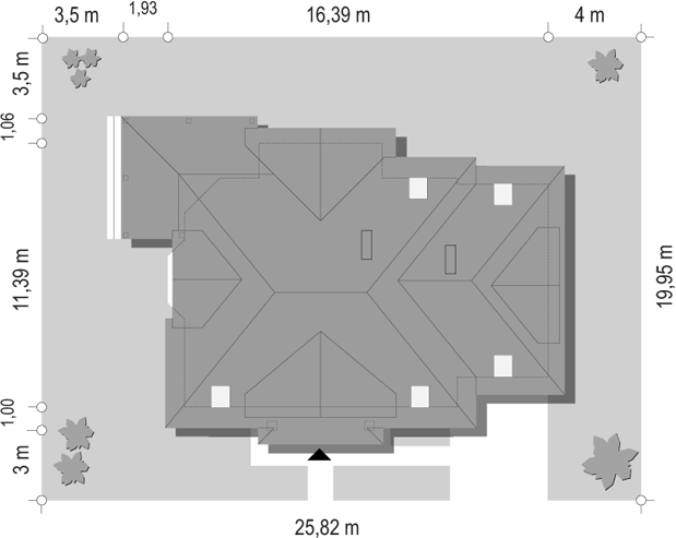 Nieduży dom parterowy z dwoma sypialniami, o prostej bryle, z dachem dwuspadowym. Przestronne wnętrze całego domu, pozwala na swobodne przemieszczanie się na wózku inwalidzkim. Niewielkie gabaryty domu gwarantują stosunkowo niski koszt jego wybudowania.