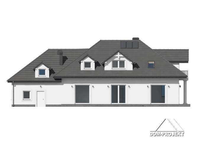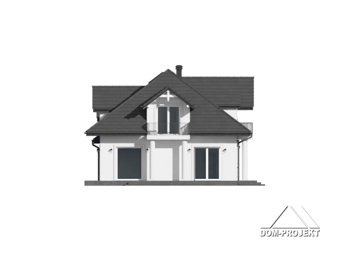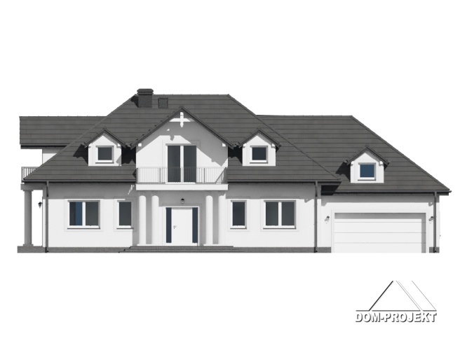 Duży dom z poddaszem użytkowym. Na parterze duży salon z kominkiem oraz wyjściem na taras. Duża kuchnia. Dwa pokoje, łazienka, wiatrołap, komunikacja, garaż na dwa samochody oraz kotłownia. Na poddaszu cztery pokoje, garderoba, łazienka, komunikacja, pralnia oraz dwa balkony.