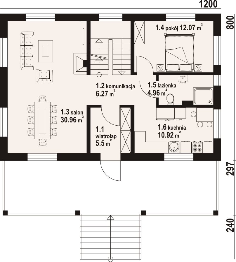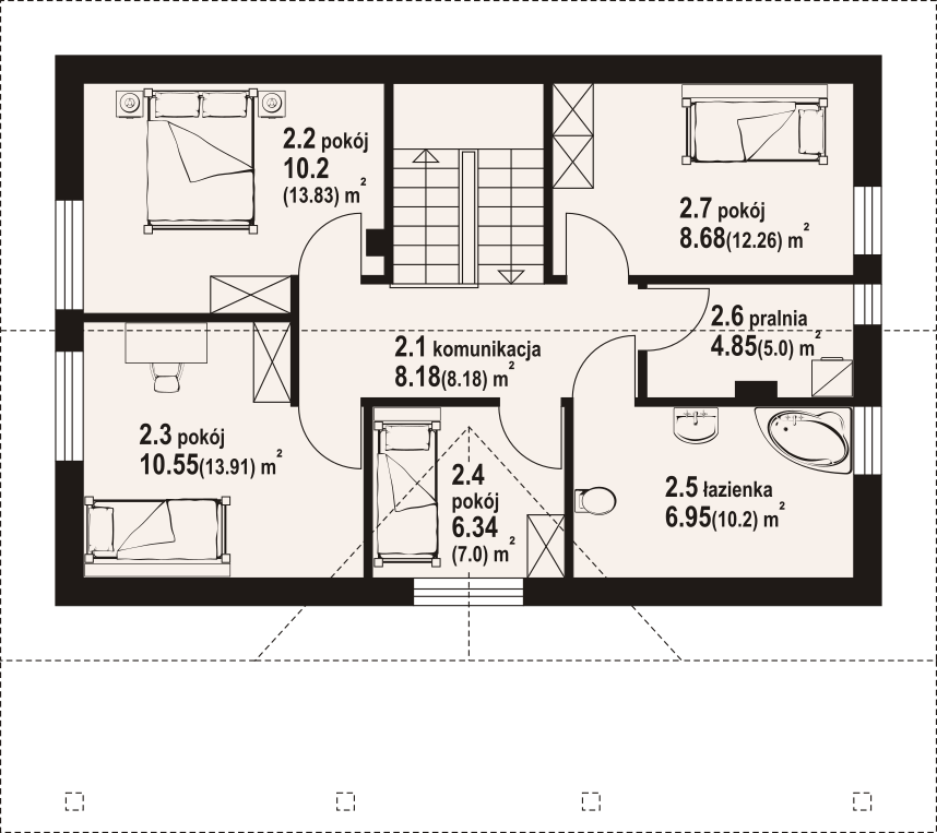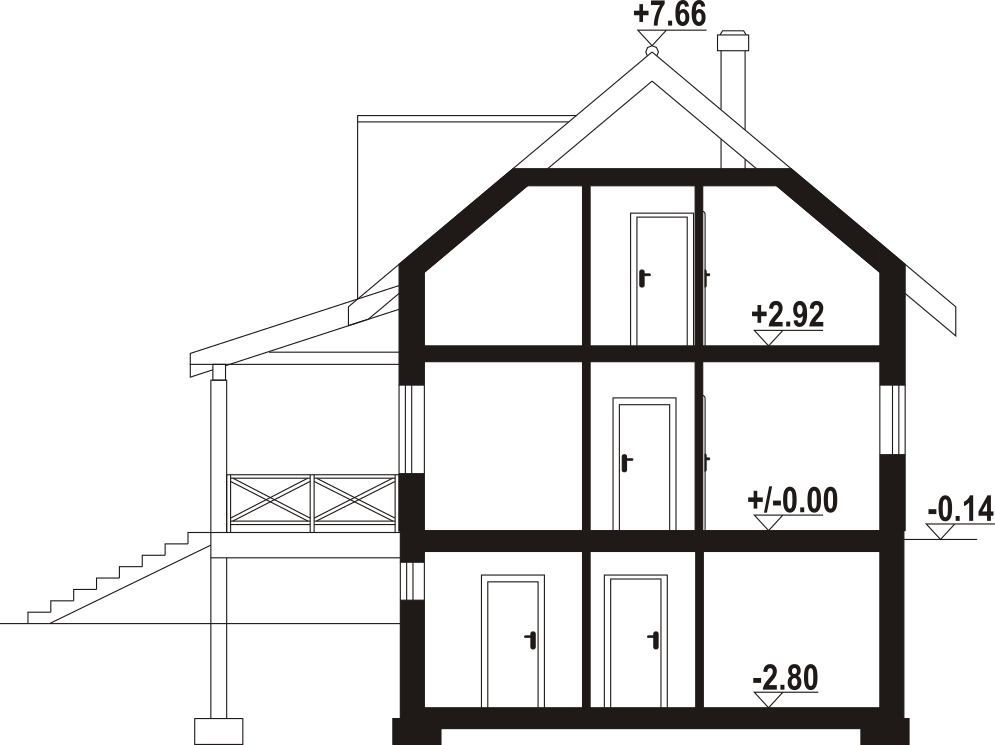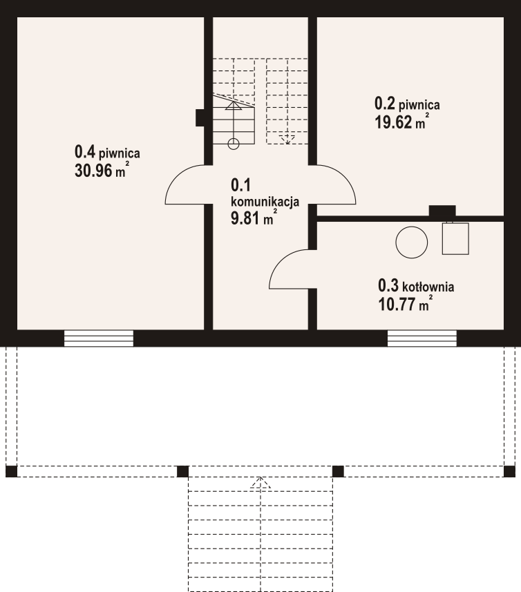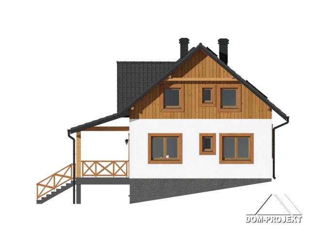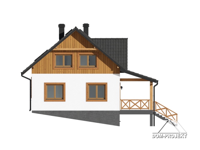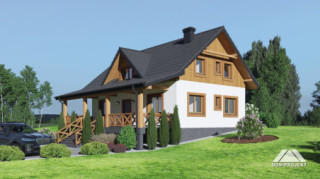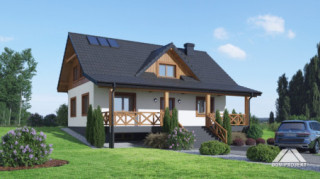 Dom z poddaszem użytkowym. Podpiwniczony. Na parterze duży salon z kominkiem, kuchnia, pokój, łazienka, wiatrołap, komunikacja. Na poddaszu cztery pokoje, łazienka, pralnia, komunikacja. W podpiwniczeniu dwie piwnice, kotłownia oraz komunikacja.