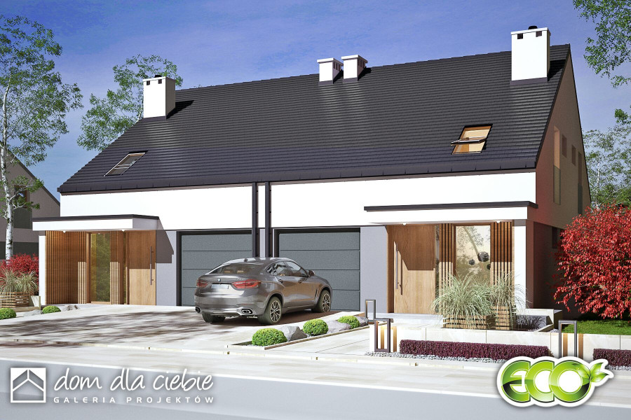 (Uwaga: projekty typu bliźniak oferujemy jako domy dwulokalowe, projekt można zamówić również w zabudowie bliźniaczej) Opis odnosi się do pojedynczego segmentu. Projekt domu Głuszec III Mode jest przykładem klasycznego domu jednorodzinnego z poddaszem przeznaczonym na cele mieszkalne. Ten dwukondygnacyjny i prosty konstrukcyjnie dom jest dobrą alternatywą na wąskie działki lub do zabudowy bliźniaczej. Do budynku prowadzi zadaszone wejście usytuowane z przodu budynku. Na parterze zaproponowano strefę wspólną. Z salonu z jadalnią i kuchnią można wyjść na taras. Pod schodami znajdziemy spiżarnię. Obok schodów zaprojektowano niewielkie WC. Dużą kotłownię jest dostępna z wiatrołapu podobnie jak i garaż. Na piętrze w projekcie zaproponowano trzy sypialnię, łazienkę i pralnię. Jedna z sypialni to duży a przestrzeń typu master bedroom. Głuszec III Mode to dom ekonomiczny w budowie i eksploatacji. Ze względów ekonomicznych zrezygnowano z balkonów i tarasów. Zastosowane portfenetry i dodatkowo okna połaciowe sprawią, że każde pomieszczenie na poddaszu będzie doskonale doświetlone. Elewację domu charakteryzuje delikatny detal i naturalna kolorystyka.
