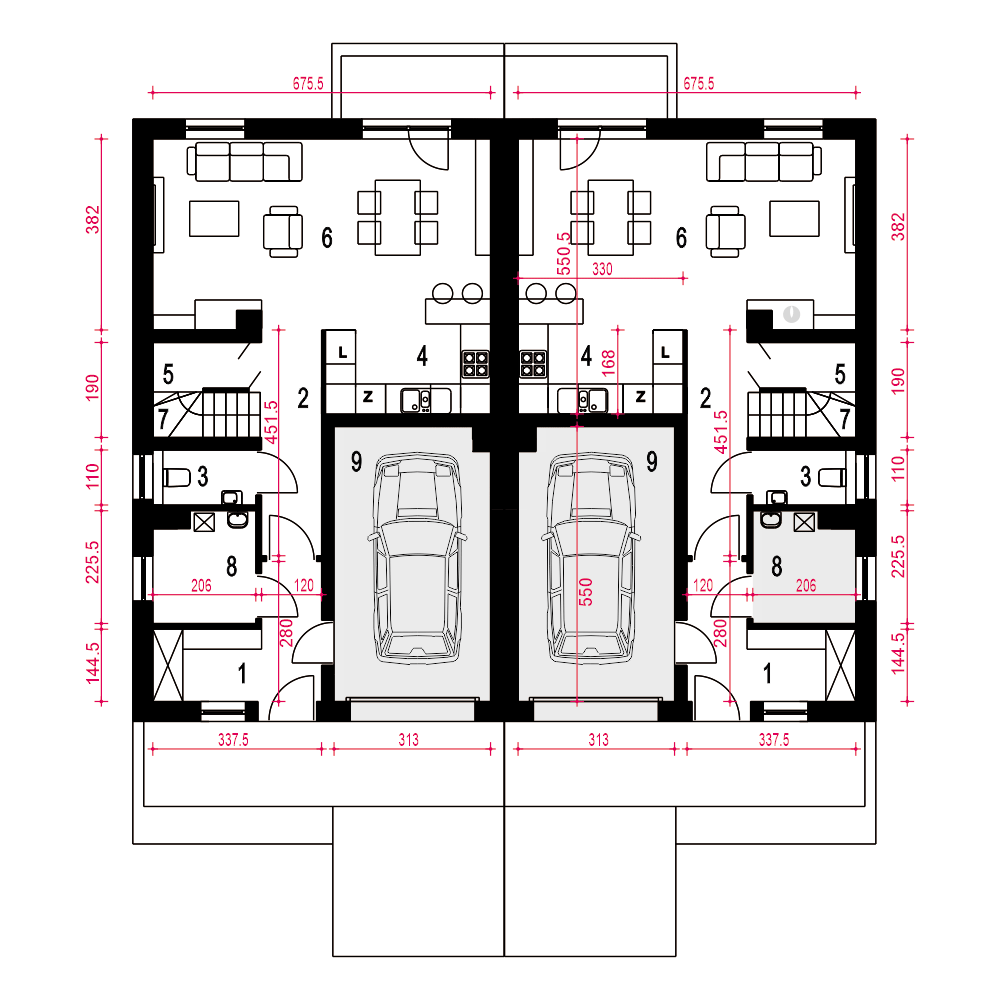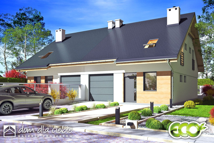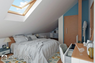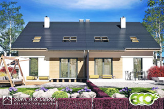 (Uwaga: projekty typu bliźniak oferujemy jako domy dwulokalowe, projekt można zamówić również w zabudowie bliźniaczej) Opis odnosi się do pojedynczego segmentu. Projekt domu Głuszec III jest przykładem klasycznego domu jednorodzinnego z poddaszem przeznaczonym na cele mieszkalne. Ten dwukondygnacyjny i prosty konstrukcyjnie dom jest dobrą alternatywą na wąskie działki lub do zabudowy bliźniaczej. Do budynku prowadzi zadaszone wejście usytuowane z przodu budynku. Na parterze zaproponowano strefę wspólną. Z salonu z jadalnią i kuchnią można wyjść na taras. Pod schodami znajdziemy spiżarnię. Obok schodów zaprojektowano niewielkie WC. Dużą kotłownię jest dostępna z wiatrołapu podobnie jak i garaż. Na piętrze w projekcie zaproponowano trzy sypialnię, łazienkę i pralnię. Jedna z sypialni to duży a przestrzeń typu master bedroom. Głuszec III to dom ekonomiczny w budowie i eksploatacji. Ze względów ekonomicznych zrezygnowano z balkonów i tarasów. Zastosowane portfenetry i dodatkowo okna połaciowe sprawią, że każde pomieszczenie na poddaszu będzie doskonale doświetlone. Elewację domu charakteryzuje delikatny detal i naturalna kolorystyka.
