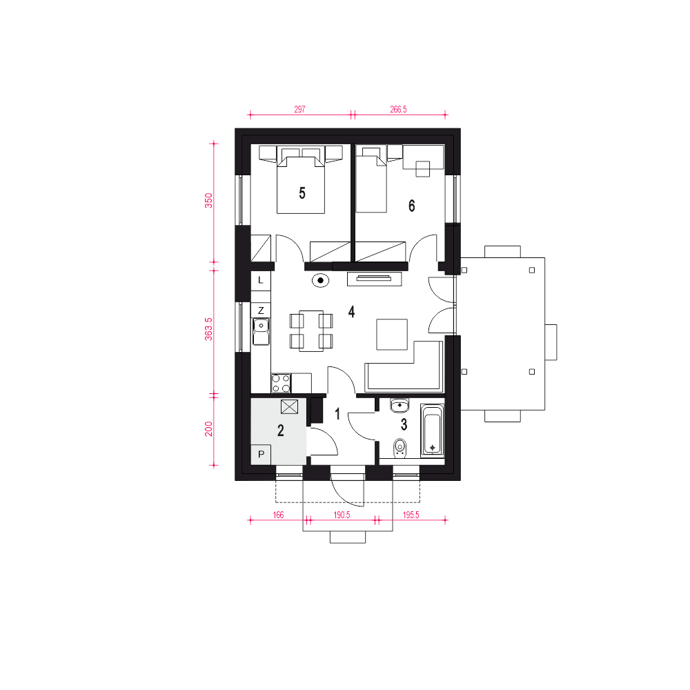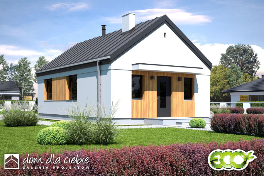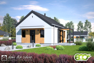 Iwo to niewielki projekt domu przeznaczony dla 2-3 osób, bez garażu.fundamenty: BETONOWE ściany zewnętrzne: POROTHERM+STYROPIAN TERMO ORGANIKA ściany wewnętrzne: POROTHERM rodzaj stropu: MITEK elewacje: TYNK STRUKTURALNY pokrycie dachu: BLACHA NA RĄBEK STOJĄCY